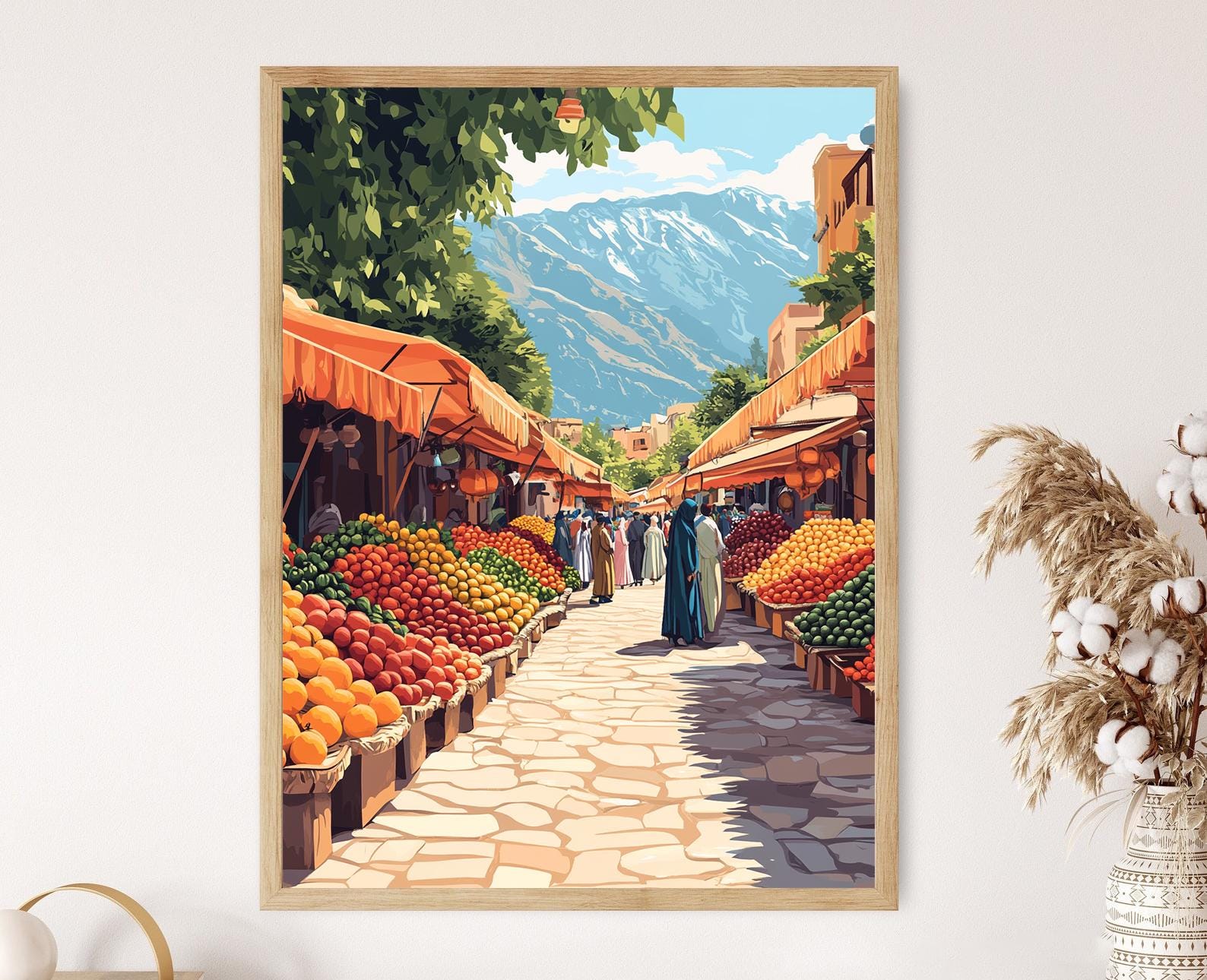 Tauchen Sie ein in die farbenfrohe Welt des jesidischen Obstmarktes mit diesem lebendigen Poster, das die Vielfalt der kurdischen Kultur feiert. Die fesselnde Illustration, voller Leben und lokaler Traditionen, ist die ideale Wanddekoration, um Ihrem Raum eine emotionale und authentische Note zu verleihen. Verwandeln Sie Ihr Interieur mit diesem einzigartigen Wandposter, das die Schönheit und das Erbe Kurdistans widerspiegelt.