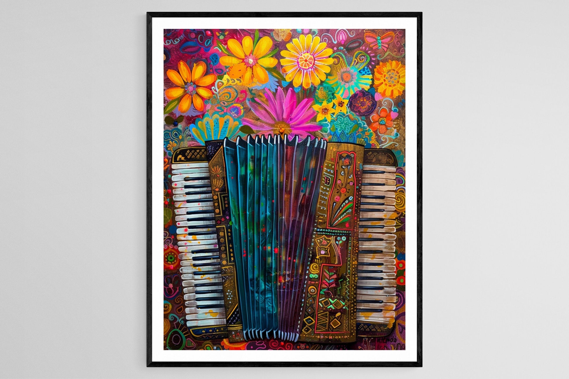 Affiche Accordéon Coloré – Poster Peinture Instrument Musical Mexicain