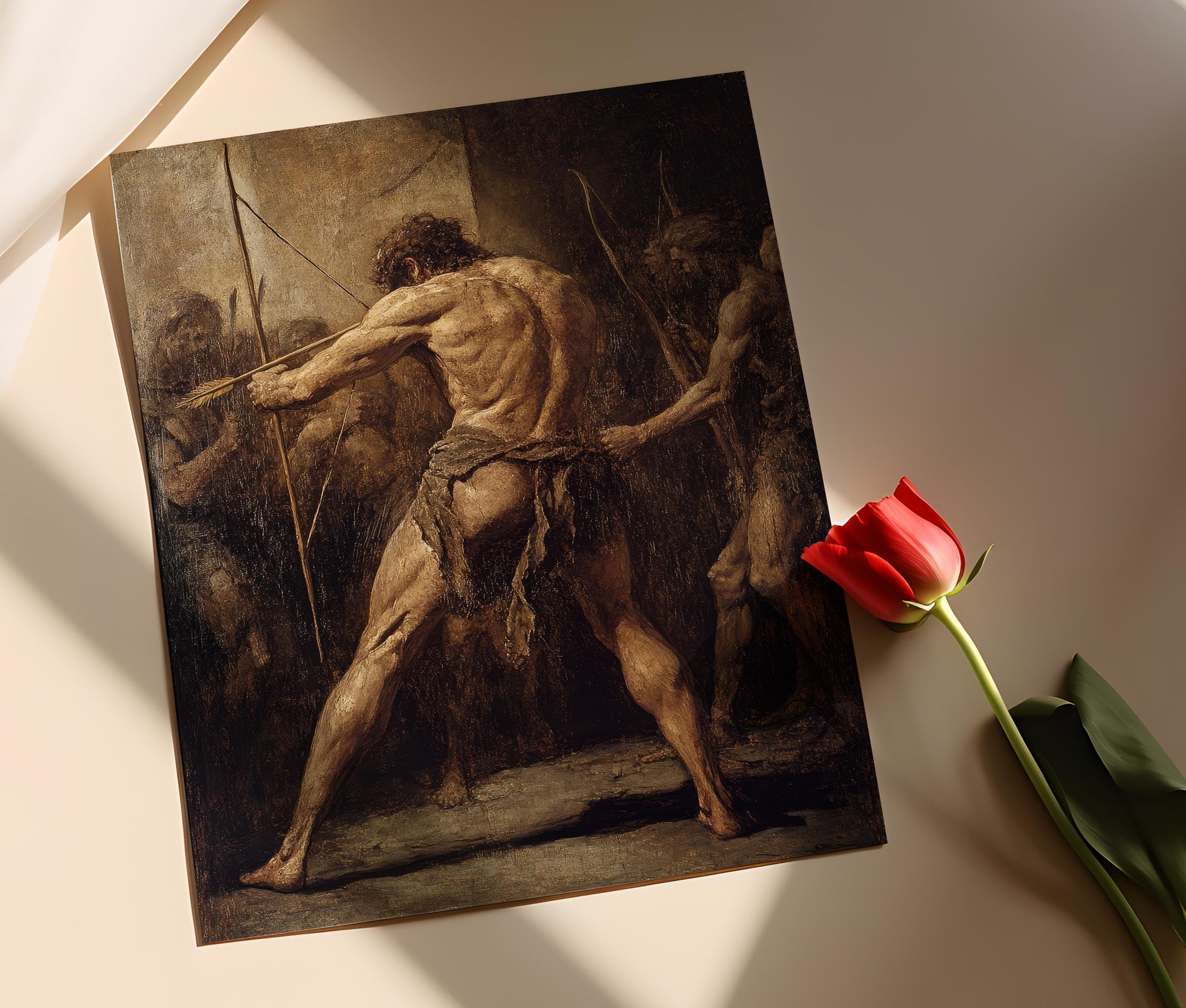 Découvrez cette magnifique affiche qui illustre le moment légendaire de la chute d'Achille, frappé par une flèche au talon. Avec son style à la fois dramatique et captivant, ce poster mural évoque la tragédie et l'héroïsme, tout en apportant une touche historique à votre décoration murale. Parfaite pour enrichir votre art mural, cette illustration saura séduire les passionnés de mythologie grecque et d'histoires épiques.