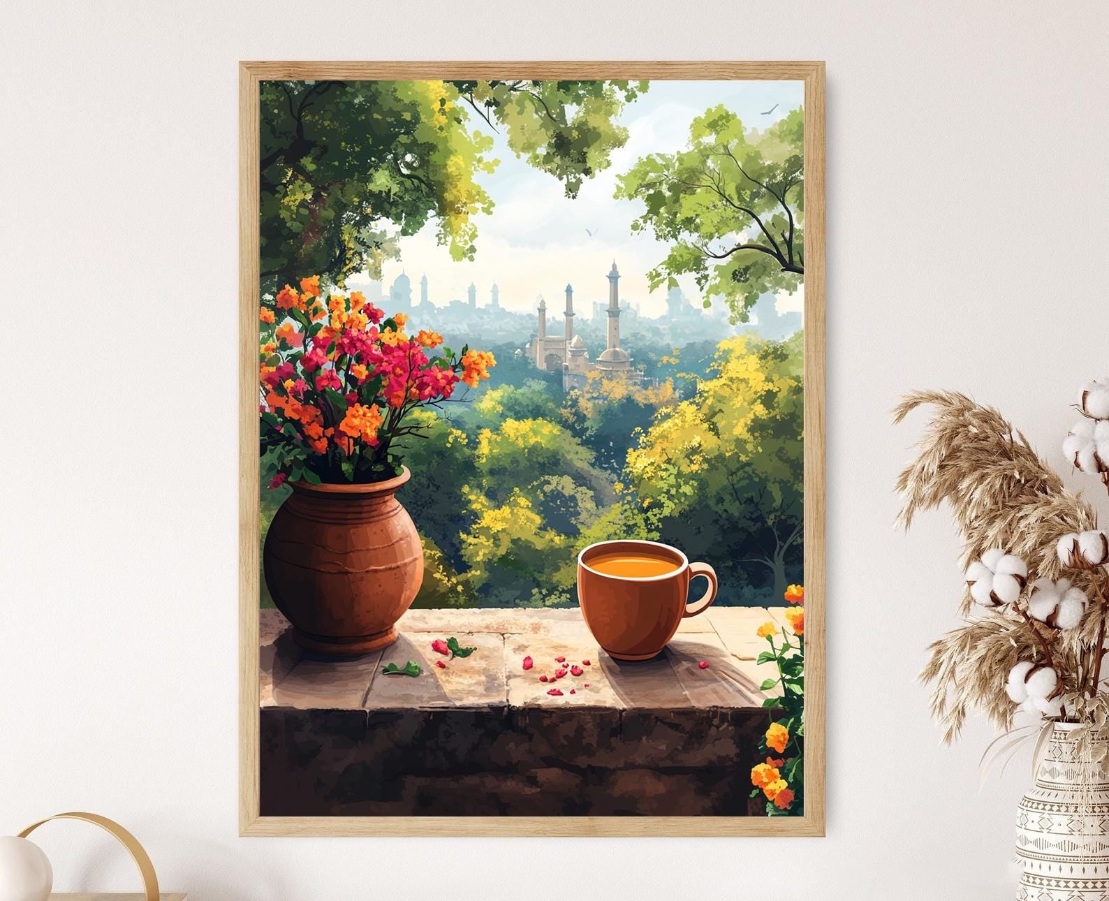 Découvrez cette affiche inspirante qui évoque la sérénité d'un matin tranquille à Ahmedabad. Avec une illustration délicate d'un bol de poha et d'un chai fumant, ce poster mural capture l'essence des rituels domestiques indiens, entouré de minarets et d'arbres baignant dans une lumière douce. Une véritable pièce de décoration murale qui apportera chaleur et poésie à votre art mural.