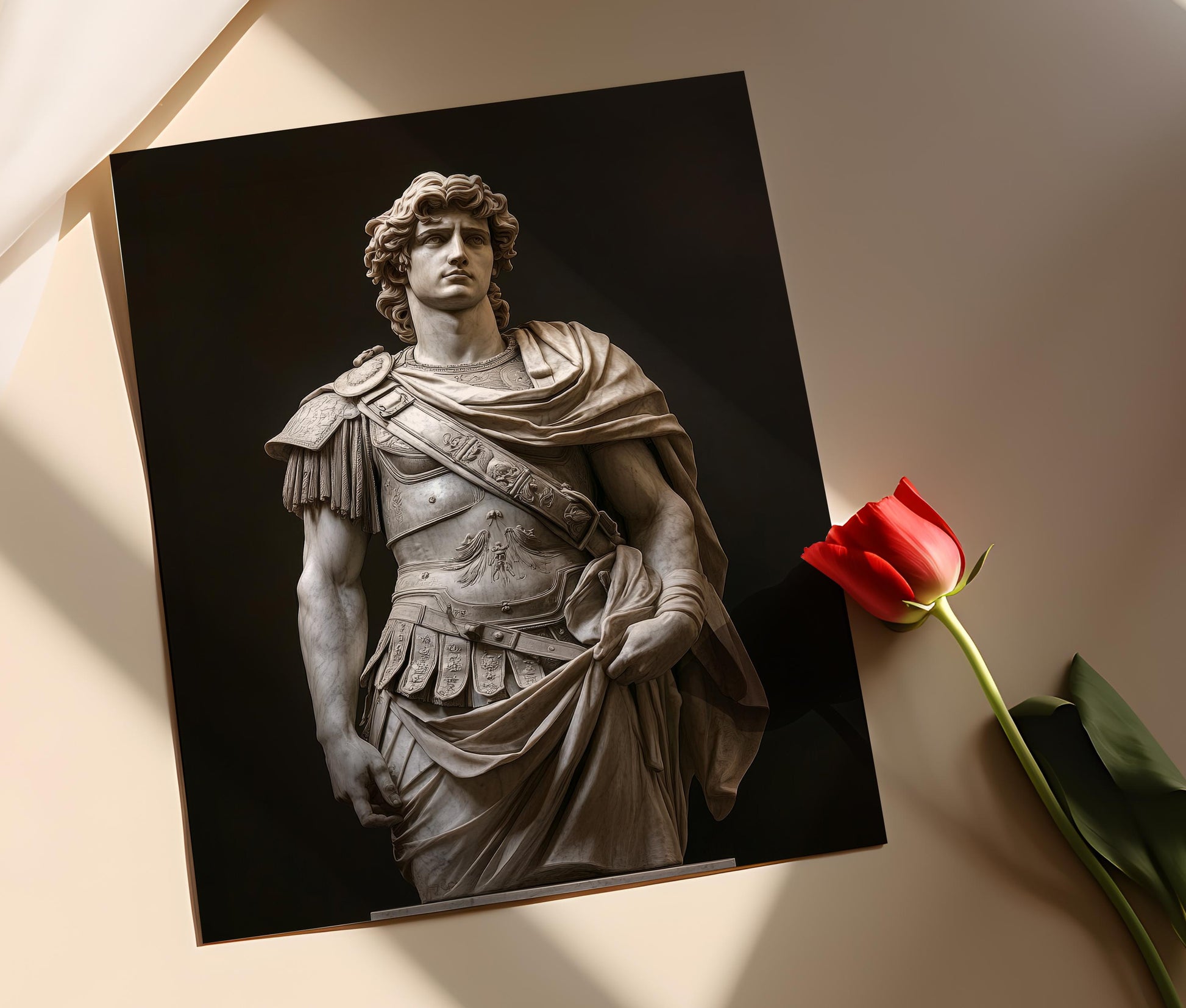 Affiche Alexandre le Grand – Poster Art Hellenistique, Pose Héroïque, Armure Détail