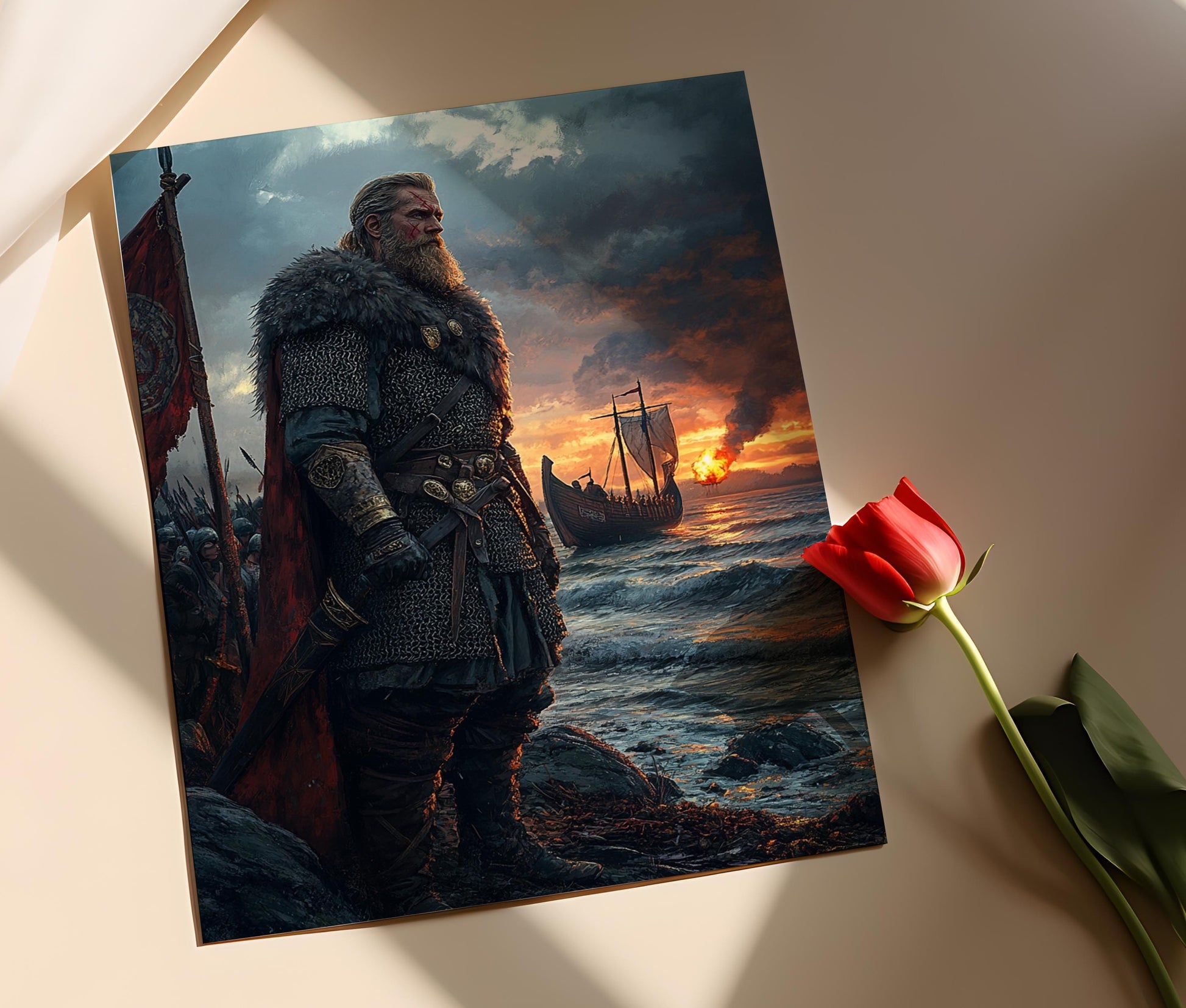 Découvrez cette affiche captivante représentant Alfred le Grand, une illustration qui plonge dans l'univers fascinant de l'ère viking. Avec son style riche en couleurs et en détails, ce poster mural évoque la bravoure et la sagesse d'un roi légendaire, apportant une touche d'histoire à votre décoration murale. Parfaite comme art mural, cette œuvre inspirante saura éveiller l'admiration et la curiosité dans n'importe quel espace.