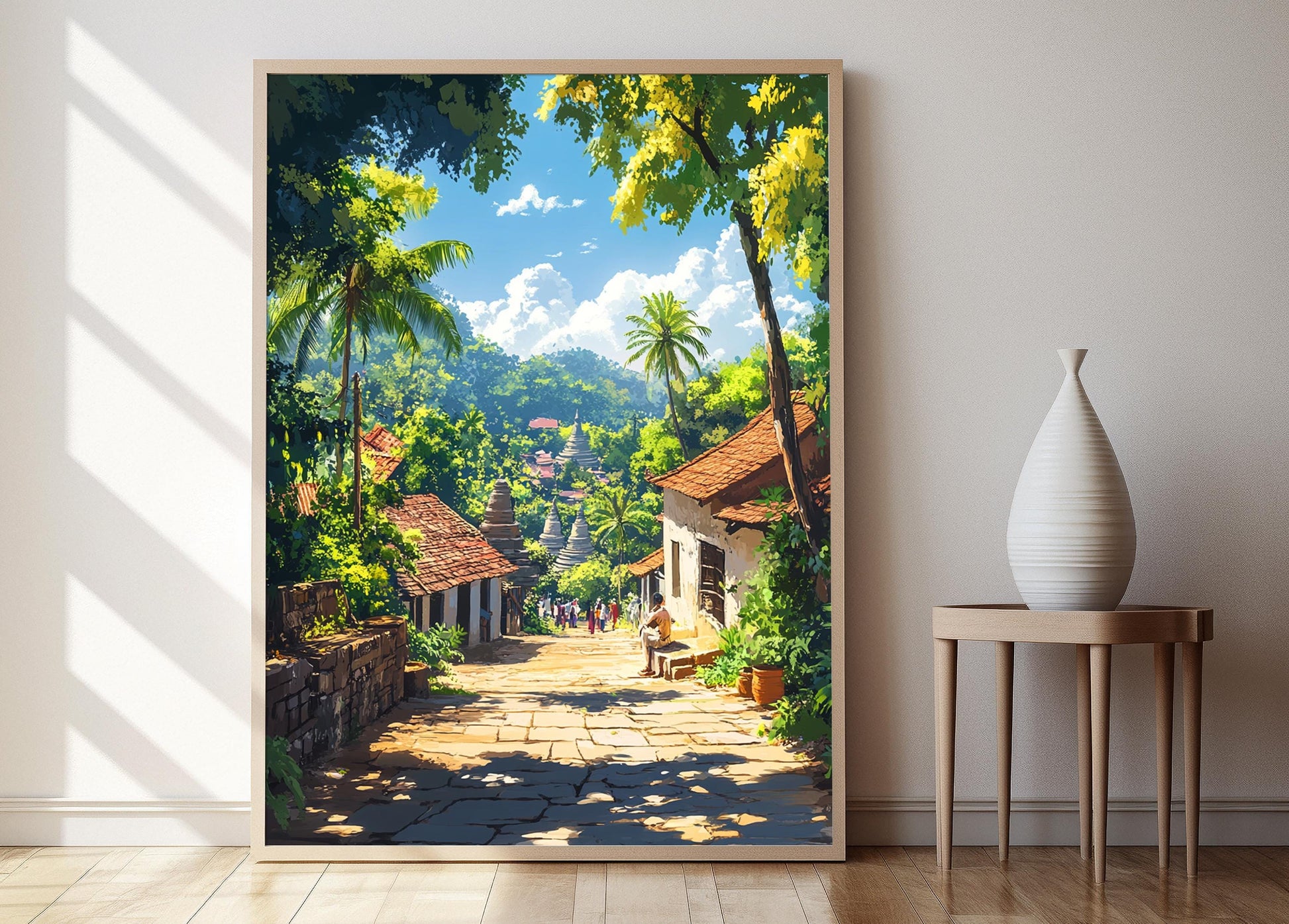 Affiche Anuradhapura – Poster Art Sri-Lankaise, Scène de Temple