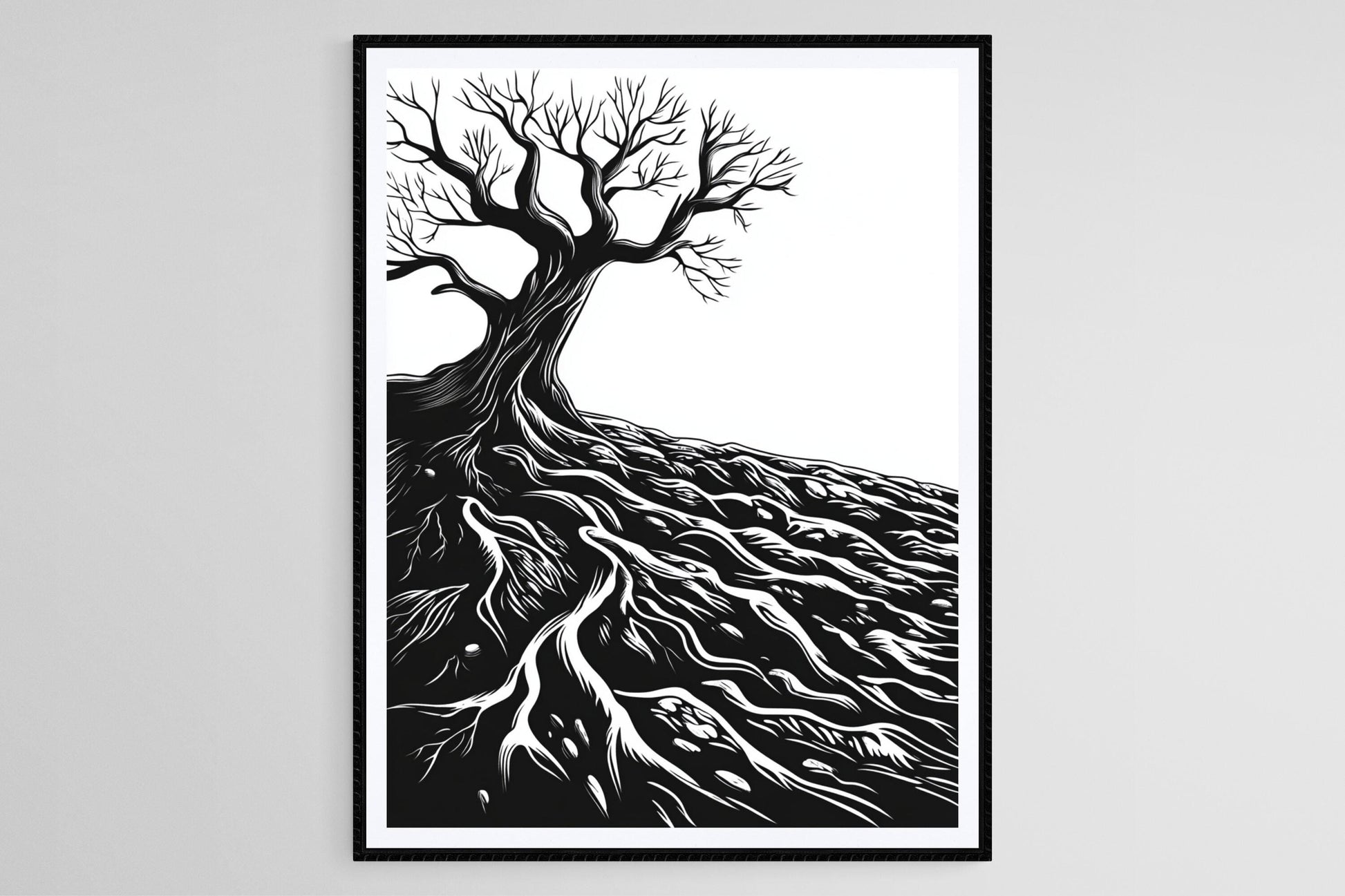 Affiche Arbre aux Racines – Poster Art Nature Minimaliste Noir et Blanc
