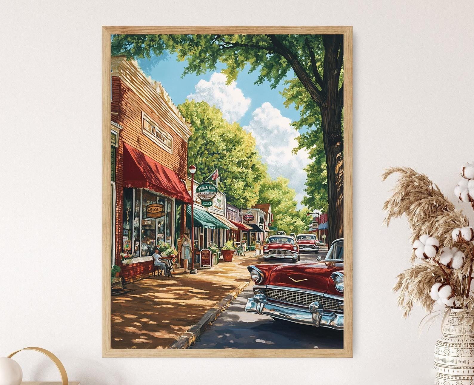 Découvrez cette affiche captivante qui évoque le charme des petites villes de l'Arkansas. Avec son illustration vibrante d'un diner vintage, de boutiques locales et de voitures classiques le long de Main Street, ce poster mural apporte une touche de nostalgie et de convivialité à votre décoration murale. Idéal pour les amateurs d'art mural qui apprécient l'esthétique Americana et l'atmosphère authentique de la vie de province.