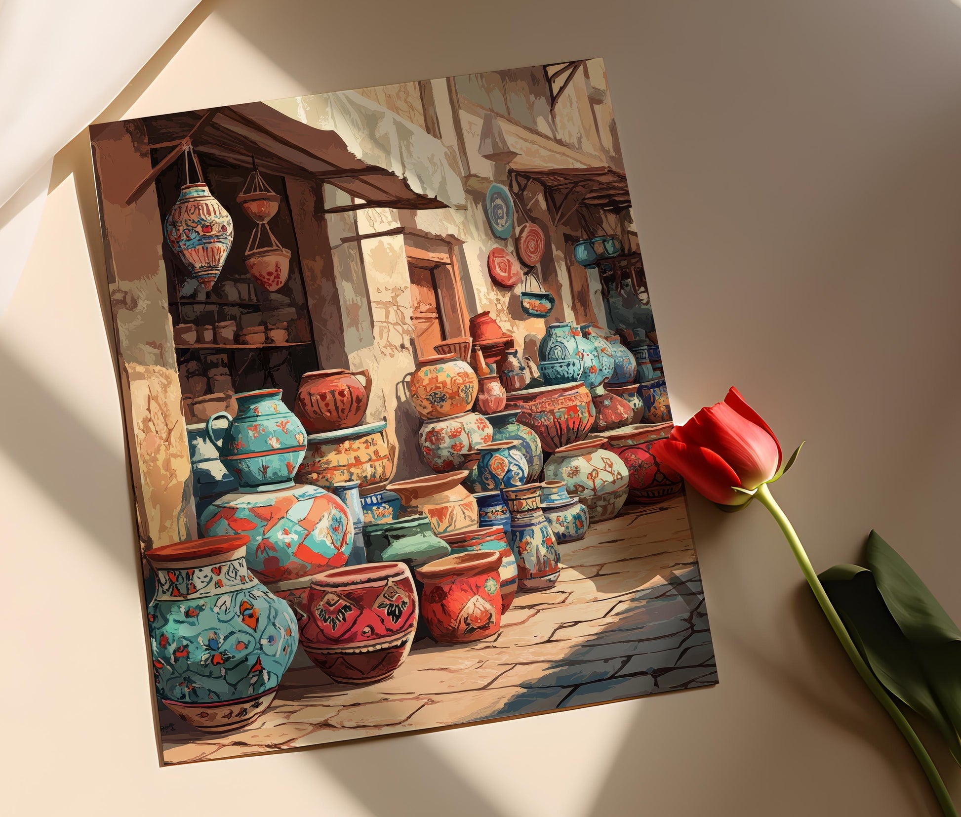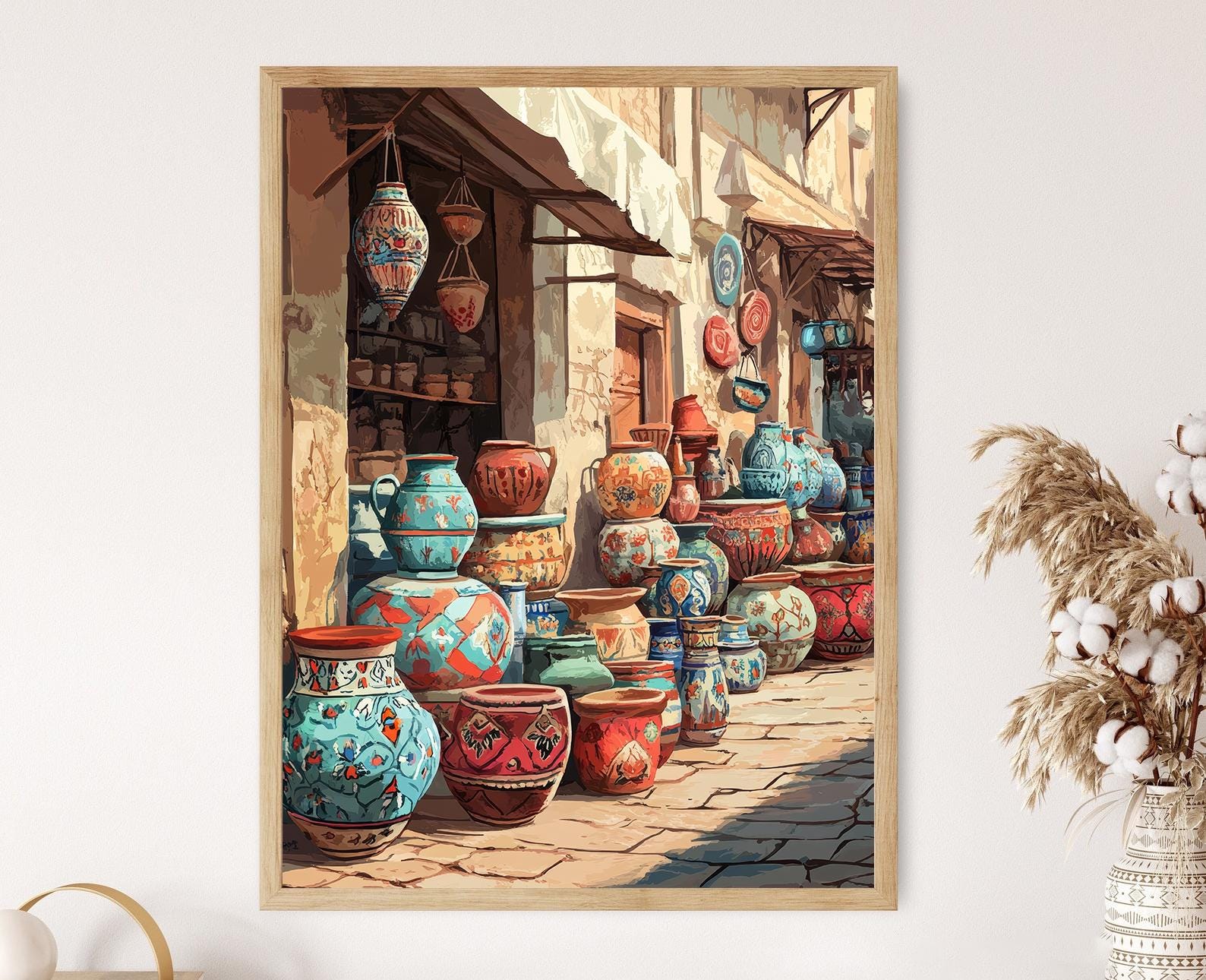 Affiche Art de la Poterie Irakienne – Scène Vibrante du Marché Oriental