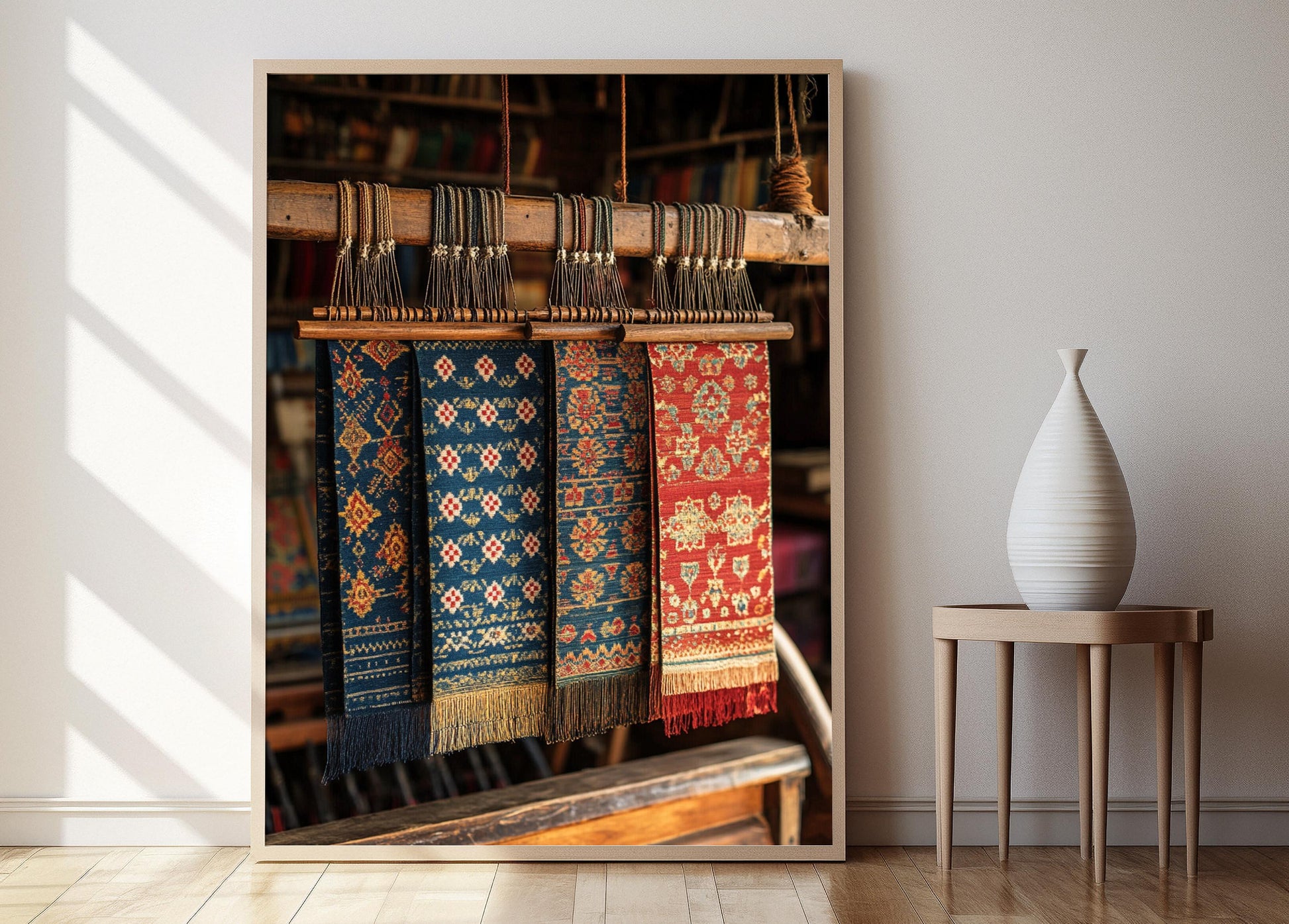 Affiche Art de Tissage Patola – Poster Design Géométrique et Floral