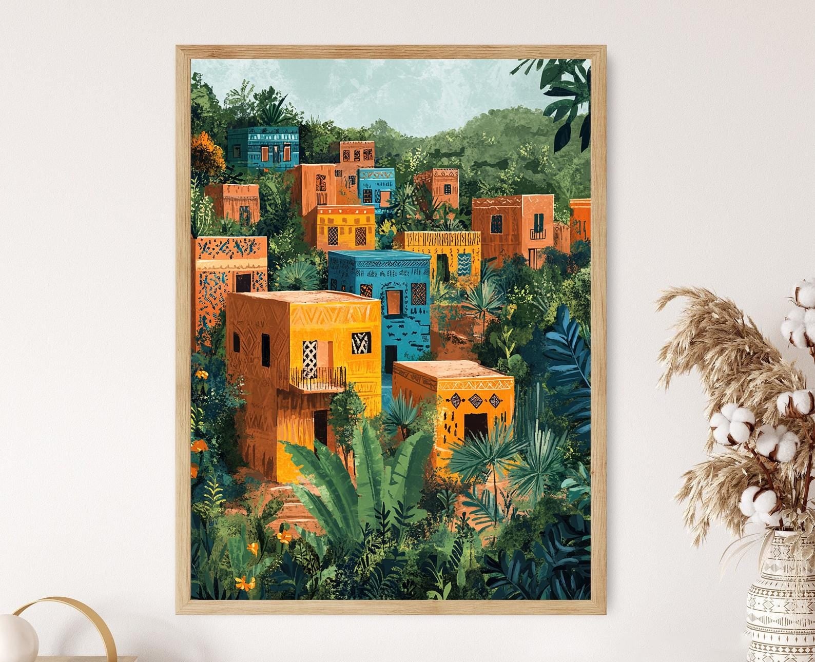 Découvrez cette affiche captivante qui met en avant l'architecture emblématique des Gourounsi au Burkina Faso. Avec des motifs géométriques minutieusement peints, cette illustration évoque une atmosphère vibrante et culturelle, parfaite pour enrichir votre décoration murale. Ce poster mural apportera une touche d'authenticité et d'émotion à votre art mural, célébrant ainsi un patrimoine unique.
