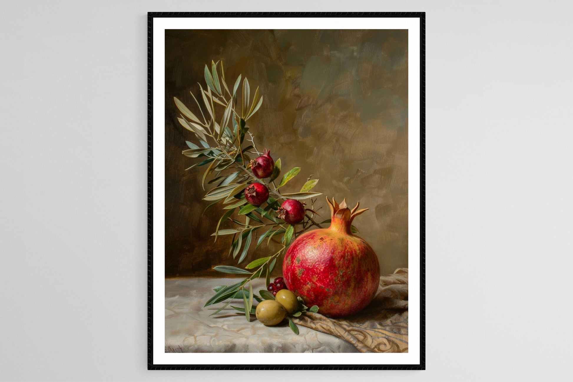 Découvrez notre affiche délicate mettant en avant une grenade et une branche d'olivier, symboles de prospérité et de paix ancrés dans la culture juive. Cette illustration vibrante, avec ses couleurs riches et son style épuré, insufflera une émotion chaleureuse à votre décoration murale. Parfaite en tant qu'art mural, elle sublime tout espace en évoquant l'héritage culturel riche de la terre d'Israël.