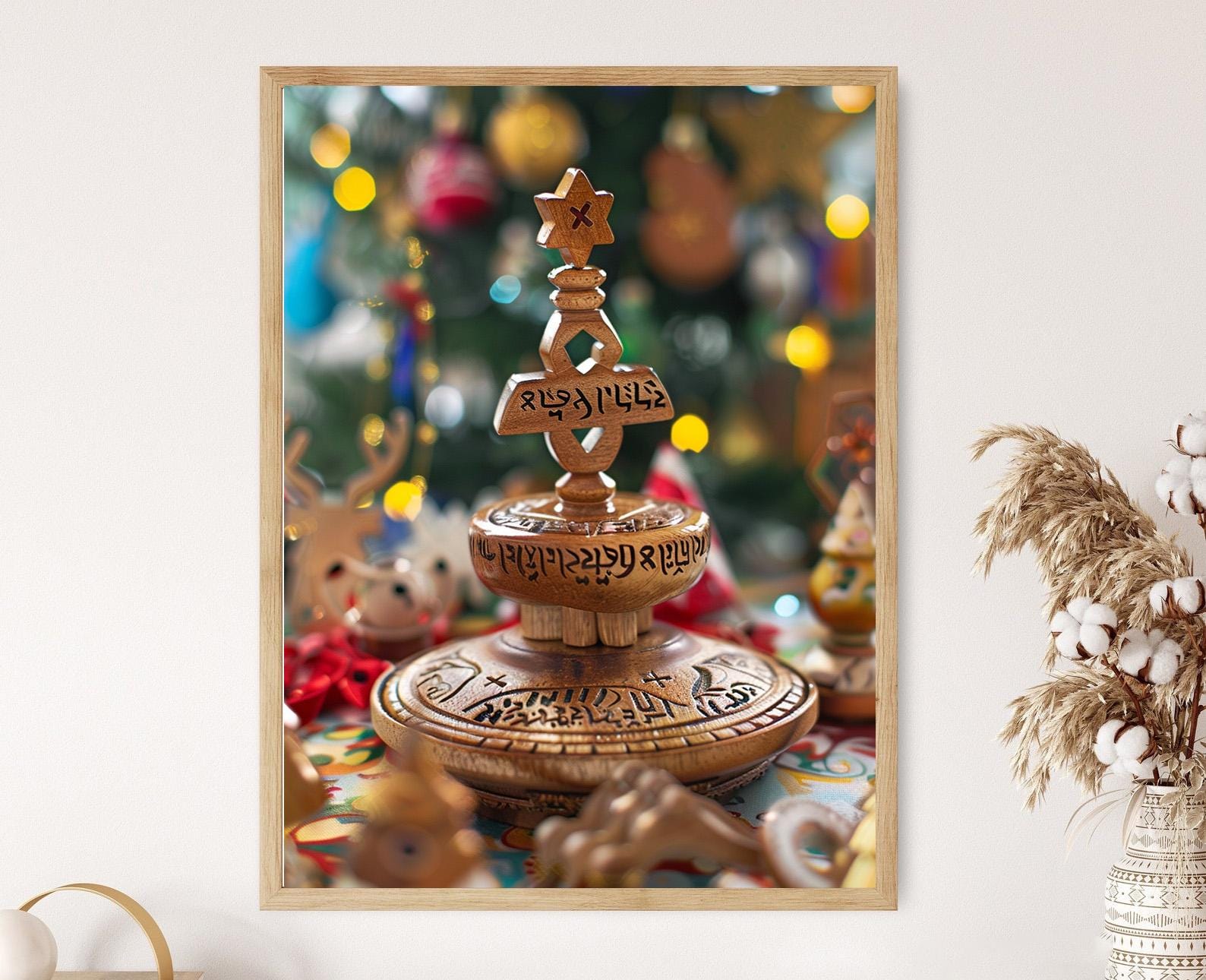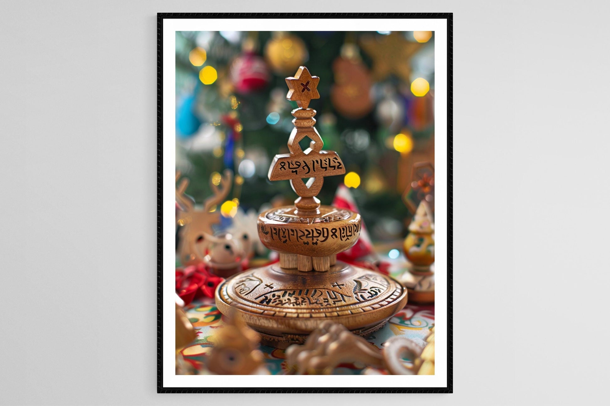 Découvrez cette magnifique affiche qui célèbre l'esprit festif de Hanukkah à travers une illustration vibrante d'un dreidel traditionnel. Évoquant la joie et la richesse culturelle de cette fête, ce poster mural est orné de lettres hébraïques et de décorations festives, apportant une touche chaleureuse et festive à votre décoration murale. Ajoutez cette pièce d'art mural à votre intérieur pour une ambiance empreinte de célébration et de tradition.