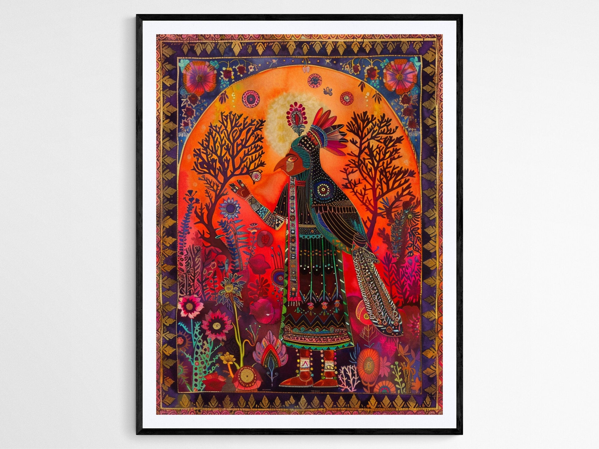 Affiche Art Populaire Indien – Poster Vibrant et Artisanale à Suspendre