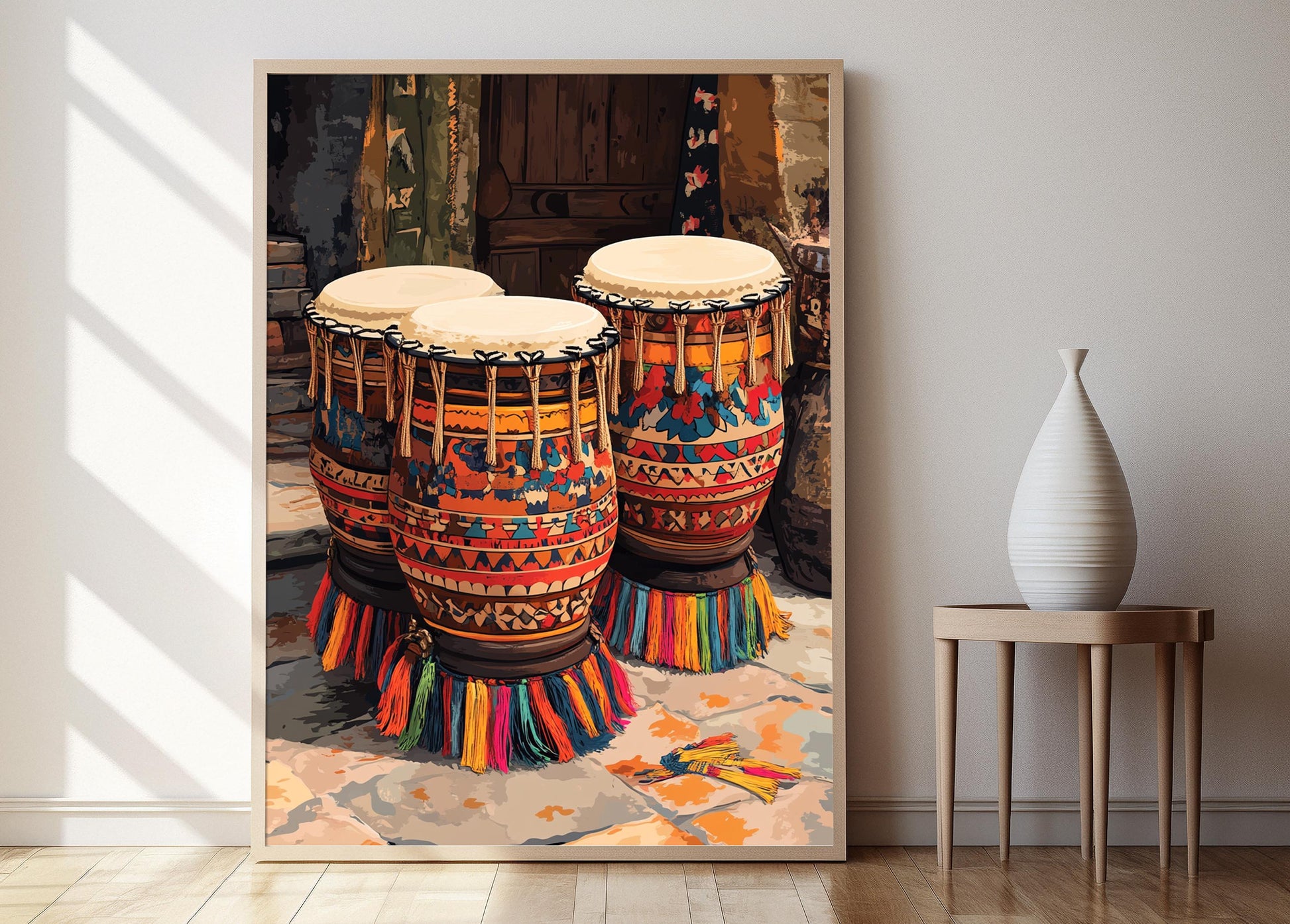 Affiche Art Populaire Népalais – Illustration de Tambour en Bois
