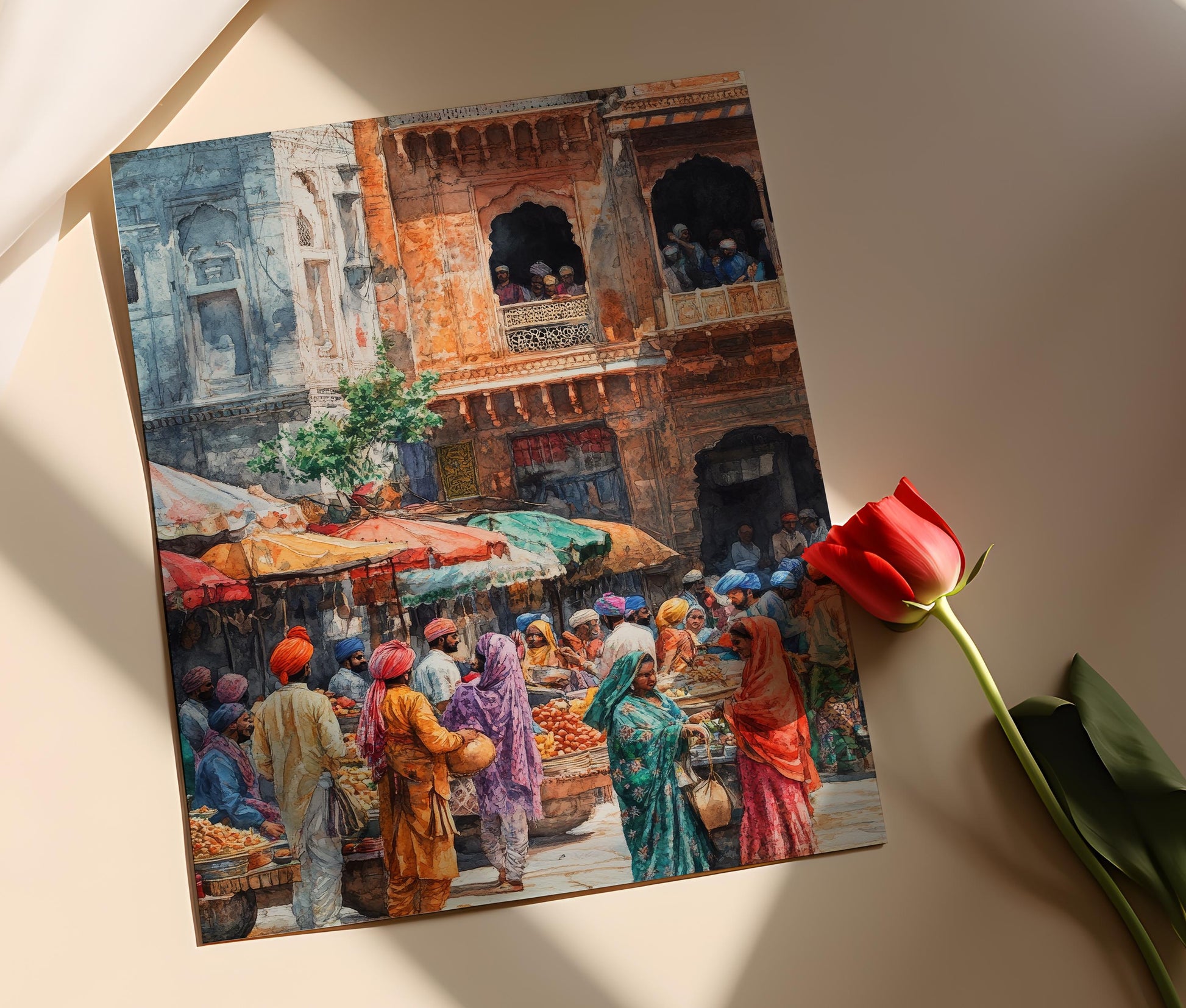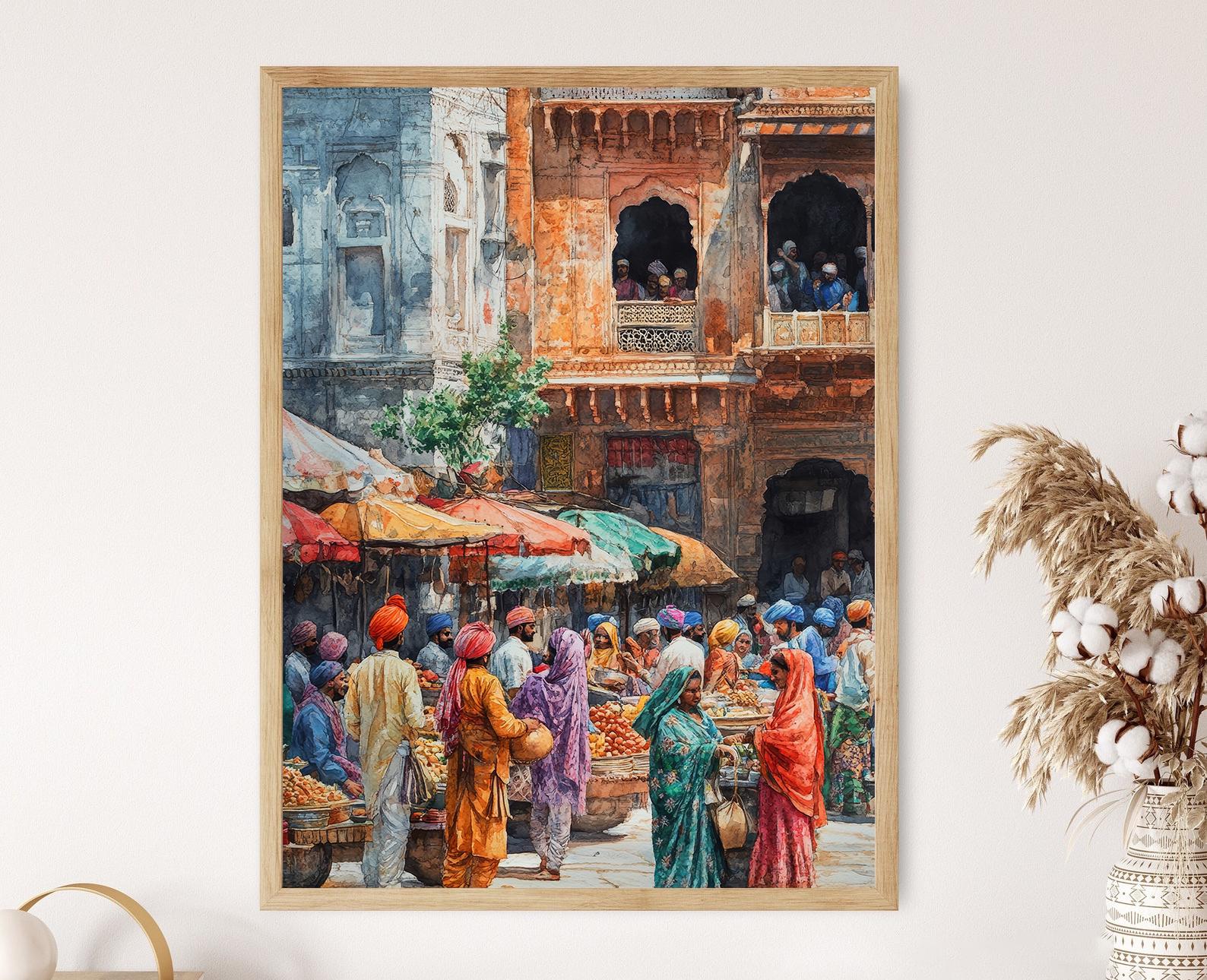 Plongez dans l'atmosphère festive d'une foire traditionnelle du Punjab avec cette affiche vibrante. Cette illustration captivante met en avant des étals colorés, des danses folkloriques et des hommes coiffés de turbans lumineux, évoquant la joie et la célébration de la culture indienne. Parfaite pour enrichir votre décoration murale, cet art mural apportera une touche de couleur et de vie à votre intérieur.