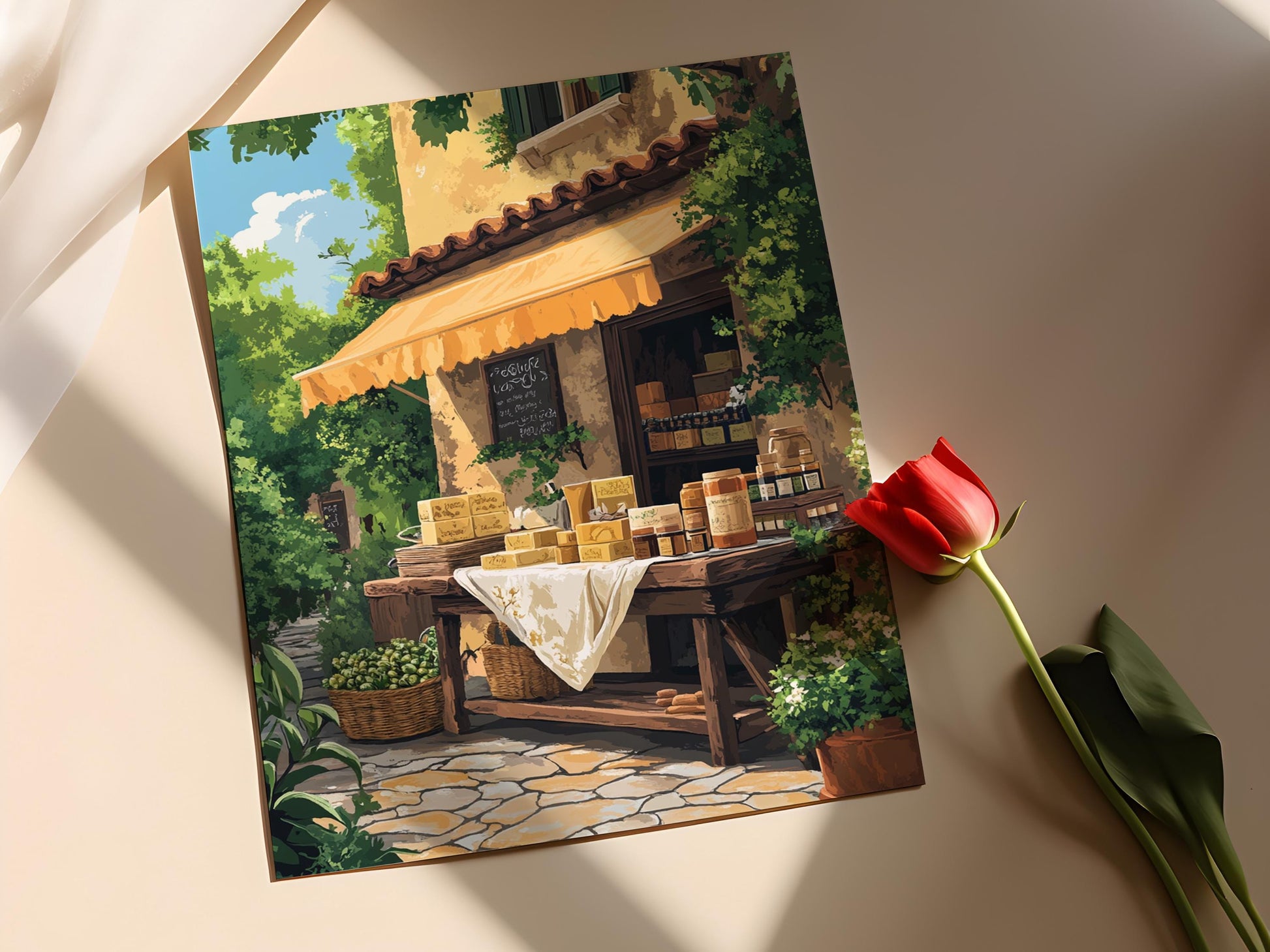Découvrez cette affiche captivante, qui illustre la douceur de la vie quotidienne à travers un vendeur libanais proposant des savons faits main et des produits de soin naturels. Avec son ambiance rustique et son décor de rue pavée, ce poster mural éveille des émotions de sérénité et d'authenticité, parfait pour enrichir votre décoration murale. Apportez une touche d'art mural unique à votre intérieur grâce à cette illustration pleine de charme.