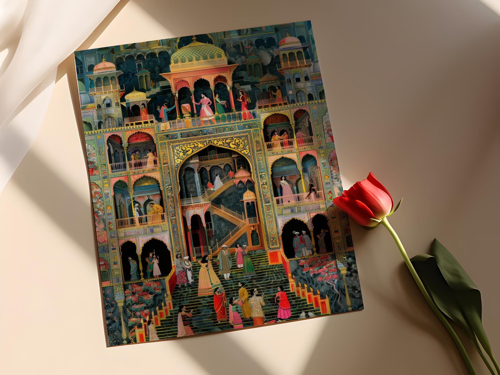 Plongez dans l'univers enchanteur de l'Inde avec cette **affiche** inspirée des peintures de Kangra, qui évoque la richesse culturelle et l'artisanat traditionnel. Cette **illustration** vibrante, pleine de couleurs et de détails délicats, apportera une touche d'émotion et de sérénité à votre intérieur. Idéale comme **poster mural**, elle devient une véritable **décoration murale** qui transformera votre espace en une galerie d'art **mural** unique.