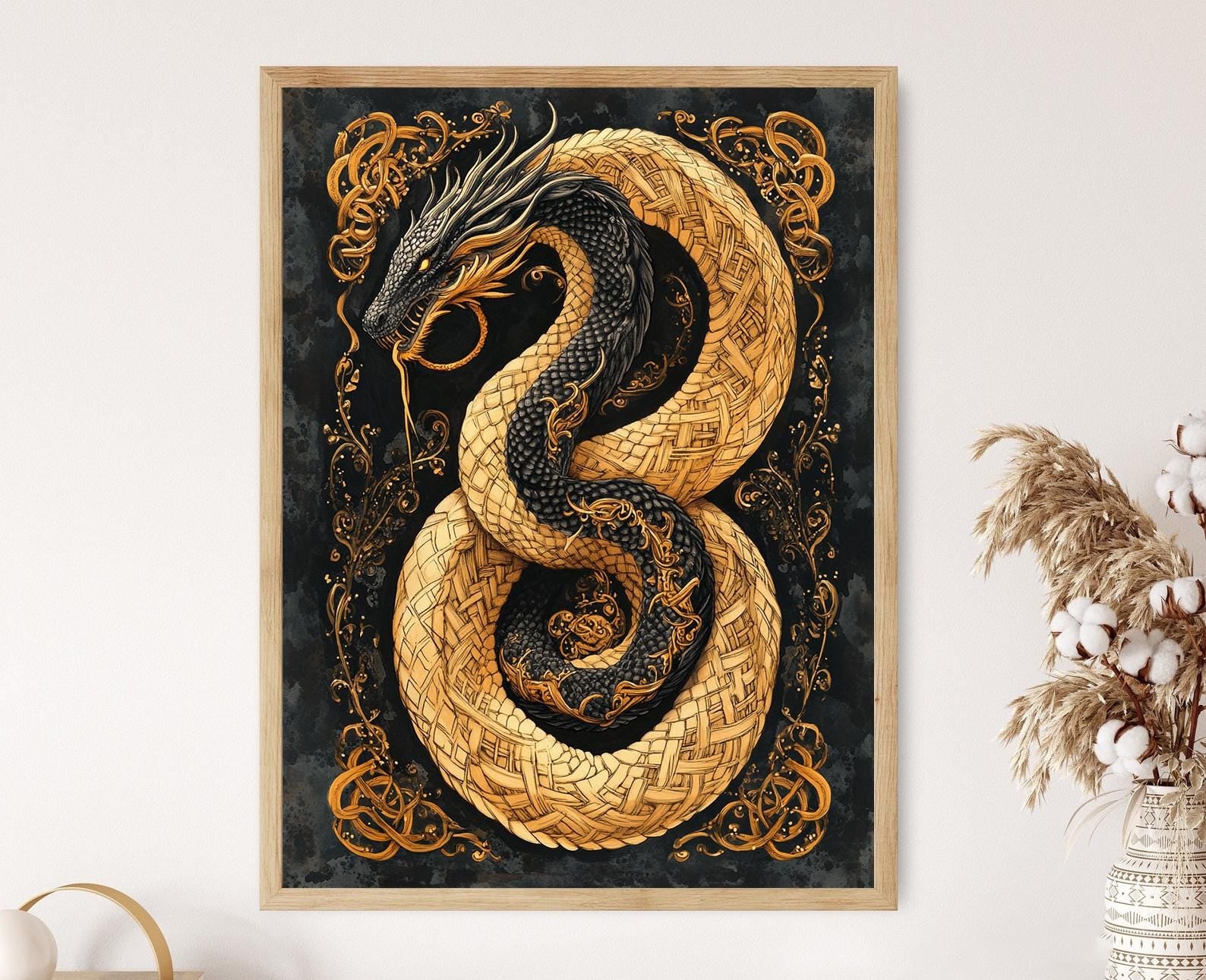 Affiche Bête Mythique Anglo-Saxonne – Poster Art Médiéval Inspiré de Sutton Hoo
