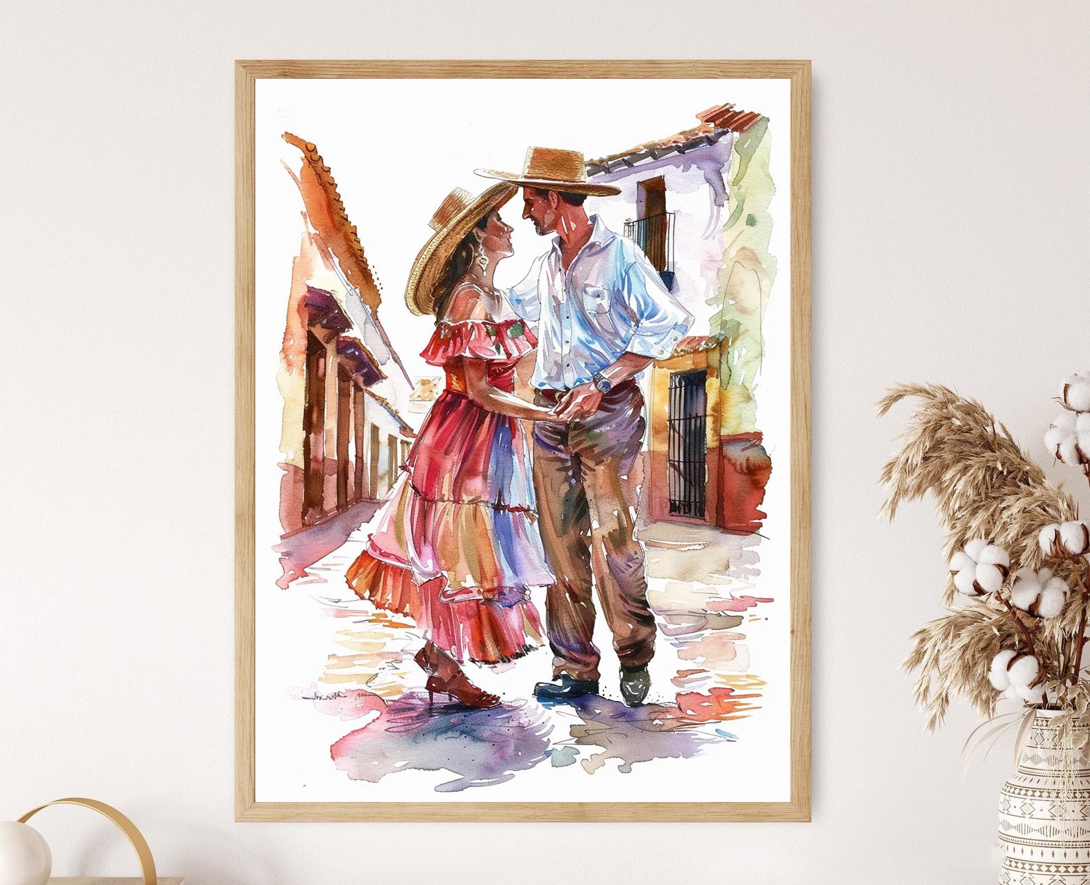 Affiche Bachata – Poster Danseurs en Tenue Traditionnelle Aquarelle