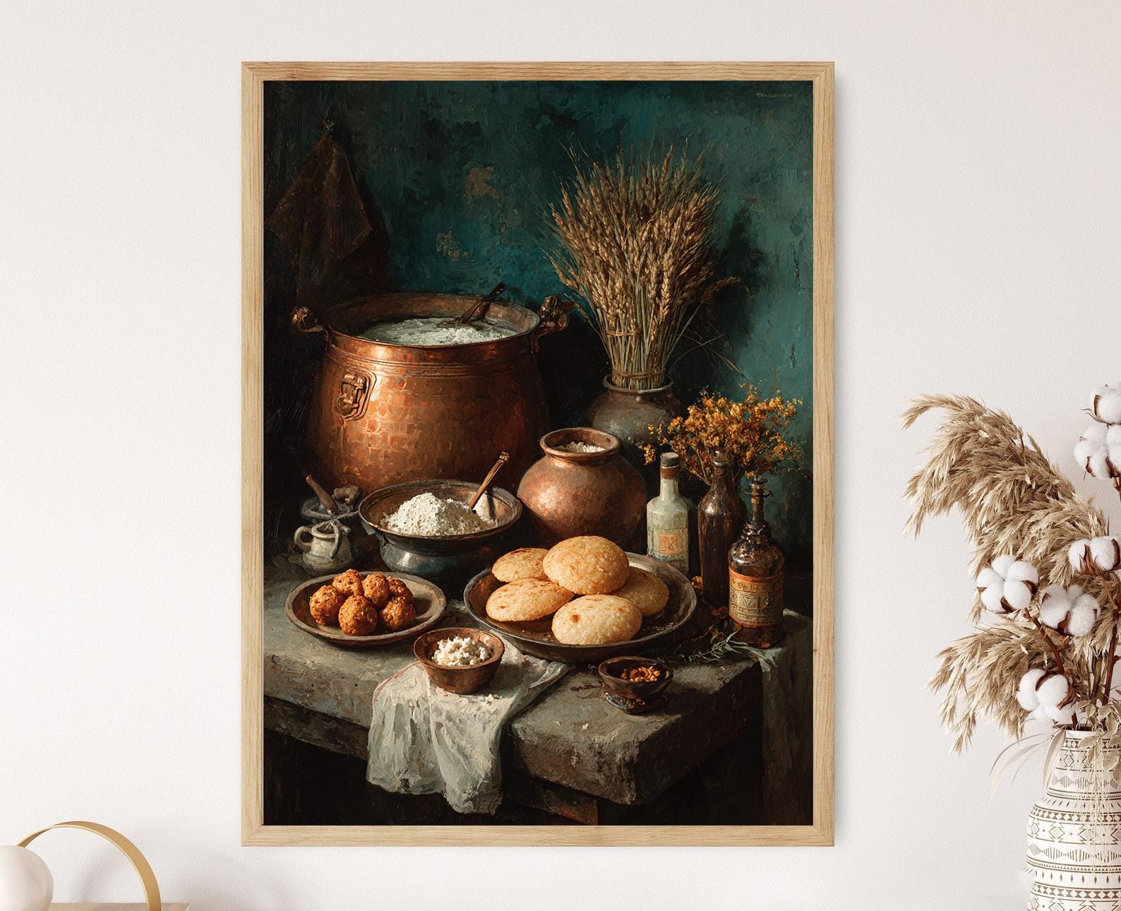 Découvrez cette affiche vibrante qui capture l'essence d'une cuisine baisakhi à Amritsar, où des aliments traditionnels punjabi se mêlent harmonieusement aux fleurs de blé et de moutarde. Cette illustration évoque une atmosphère de célébration et de convivialité, transformant votre espace en une véritable œuvre d'art mural. Parfaite pour enrichir votre décoration murale, ce poster mural apportera chaleur et joie à votre intérieur.
