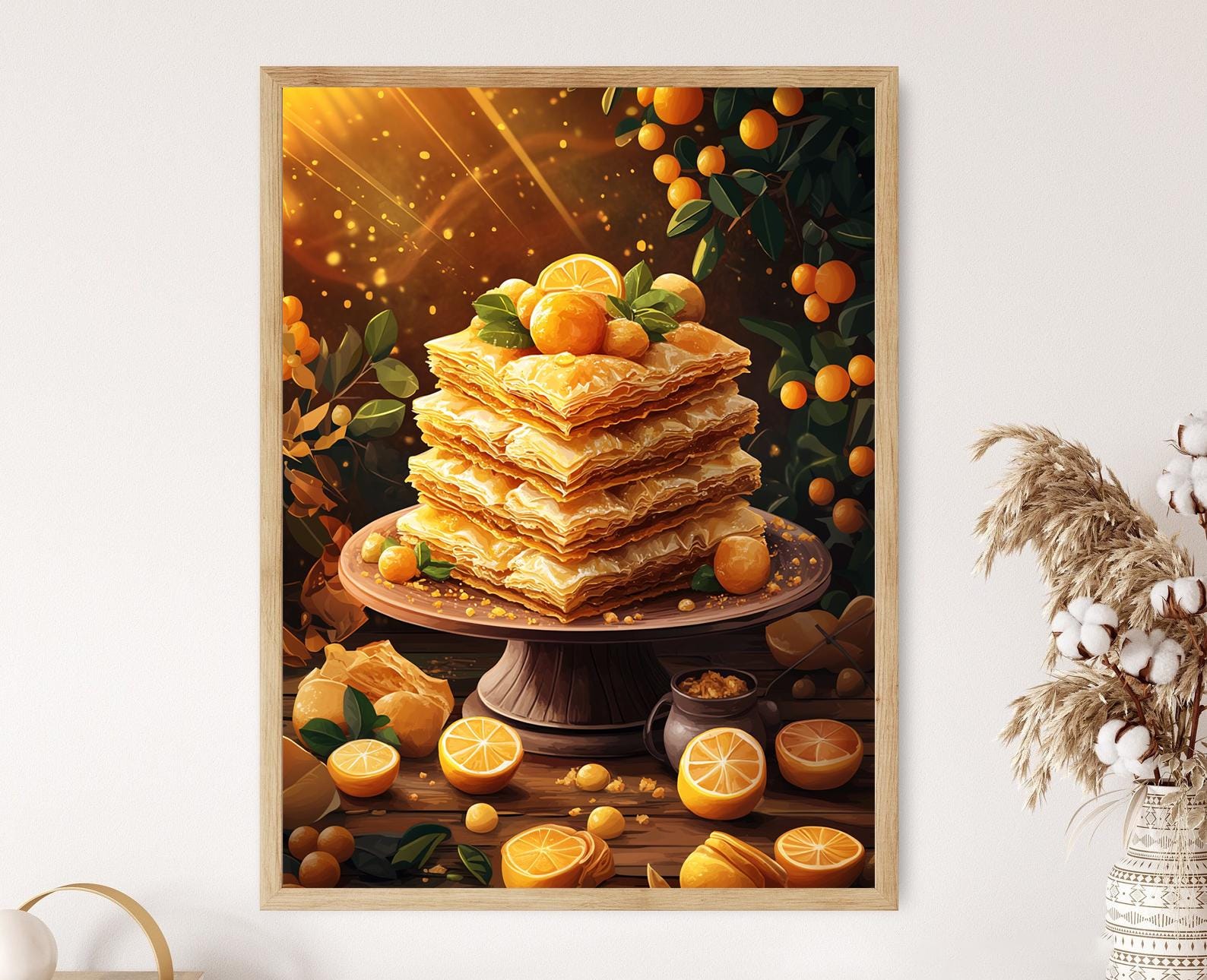 Découvrez cette affiche captivante mettant en avant la beauté des desserts libanais à travers une illustration délicate de Baklava. Avec son glaçage doré et ses détails vibrants, ce poster mural apporte une touche festive et gourmande à votre décoration murale. Idéal pour égayer votre cuisine ou comme une pièce d'art mural unique pour les amoureux des douceurs.