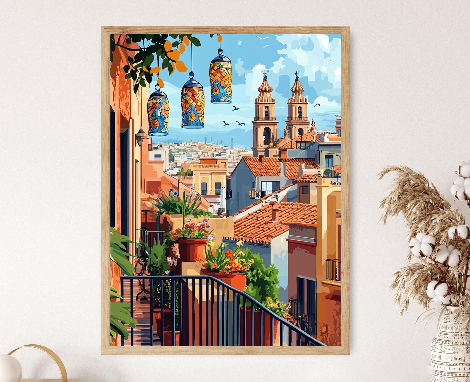 Découvrez cette affiche vibrante représentant les carillons en mosaïque de Barcelone, inspirés par l'architecture emblématique de Gaudí. Avec ses couleurs éclatantes et son ambiance enchanteresse, ce poster mural capture la beauté d'un souffle léger qui danse à travers l'horizon carrelé de la ville. Parfaite pour une décoration murale, cette illustration apportera une touche de magie et de créativité à votre art mural.