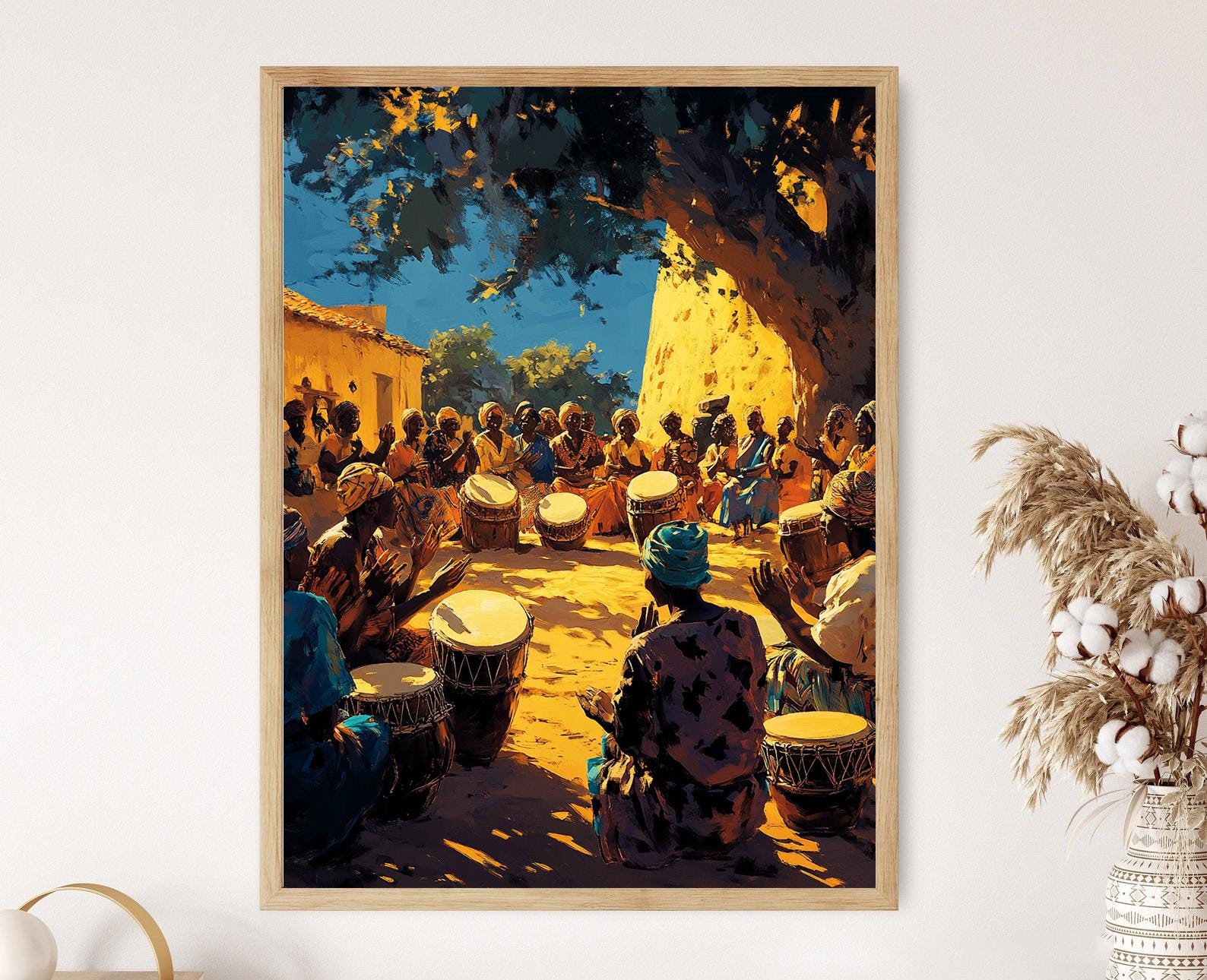 Affiche Batteurs Malien – Poster Illustration Célébration Villageoise