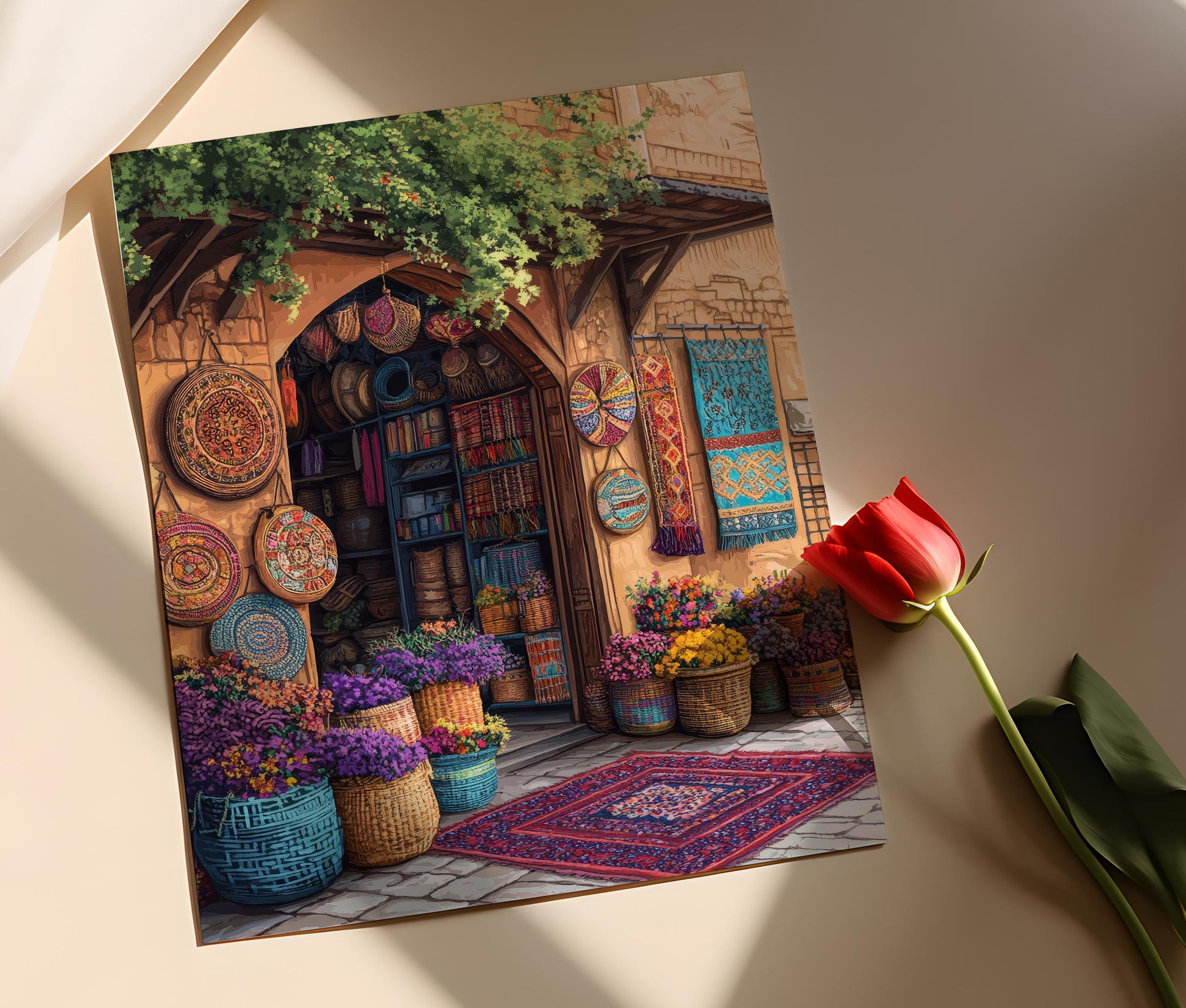 Cette affiche vibrante met en avant des paniers iraniens tissés à la main, disposés dans un marché traditionnel, créant une atmosphère chaleureuse et authentique. Avec son illustration colorée et ses détails raffinés, ce poster mural apporte une touche de culture et de joie à votre décoration murale. Idéal pour enrichir votre art mural, il invite à la découverte et à l'évasion.