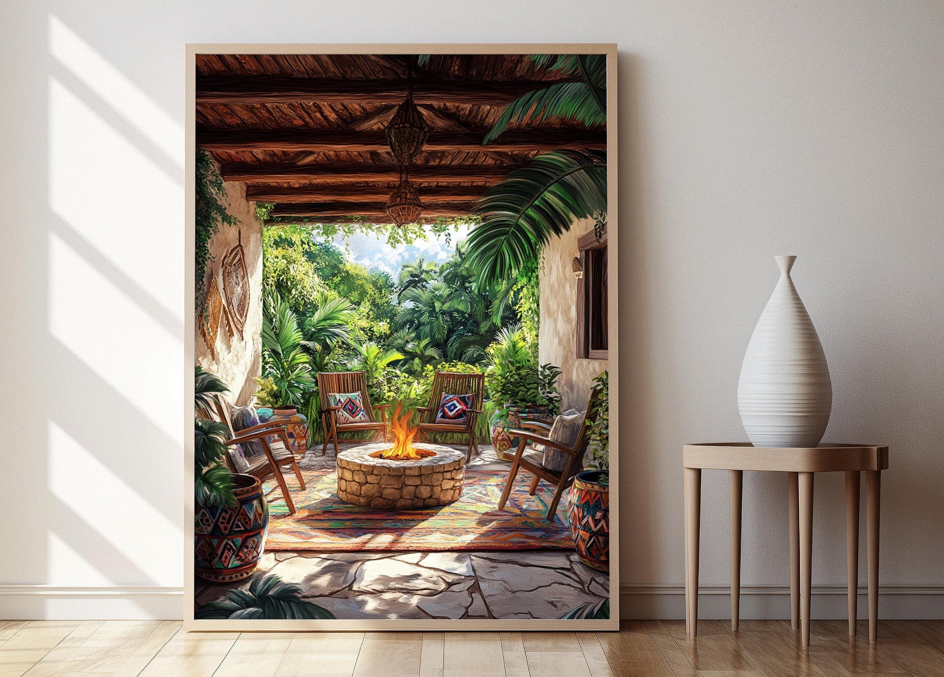 Découvrez cette affiche captivante qui évoque la chaleur accueillante d'un patio belizien, agrémenté de motifs garifuna et de décorations tropicales. Cette illustration vibrante, à la fois colorée et conviviale, constitue une décoration murale idéale pour insuffler une touche d'exotisme et de charme culturel à votre espace. Transformez votre intérieur avec cet art mural qui invite à la détente et à l'évasion.