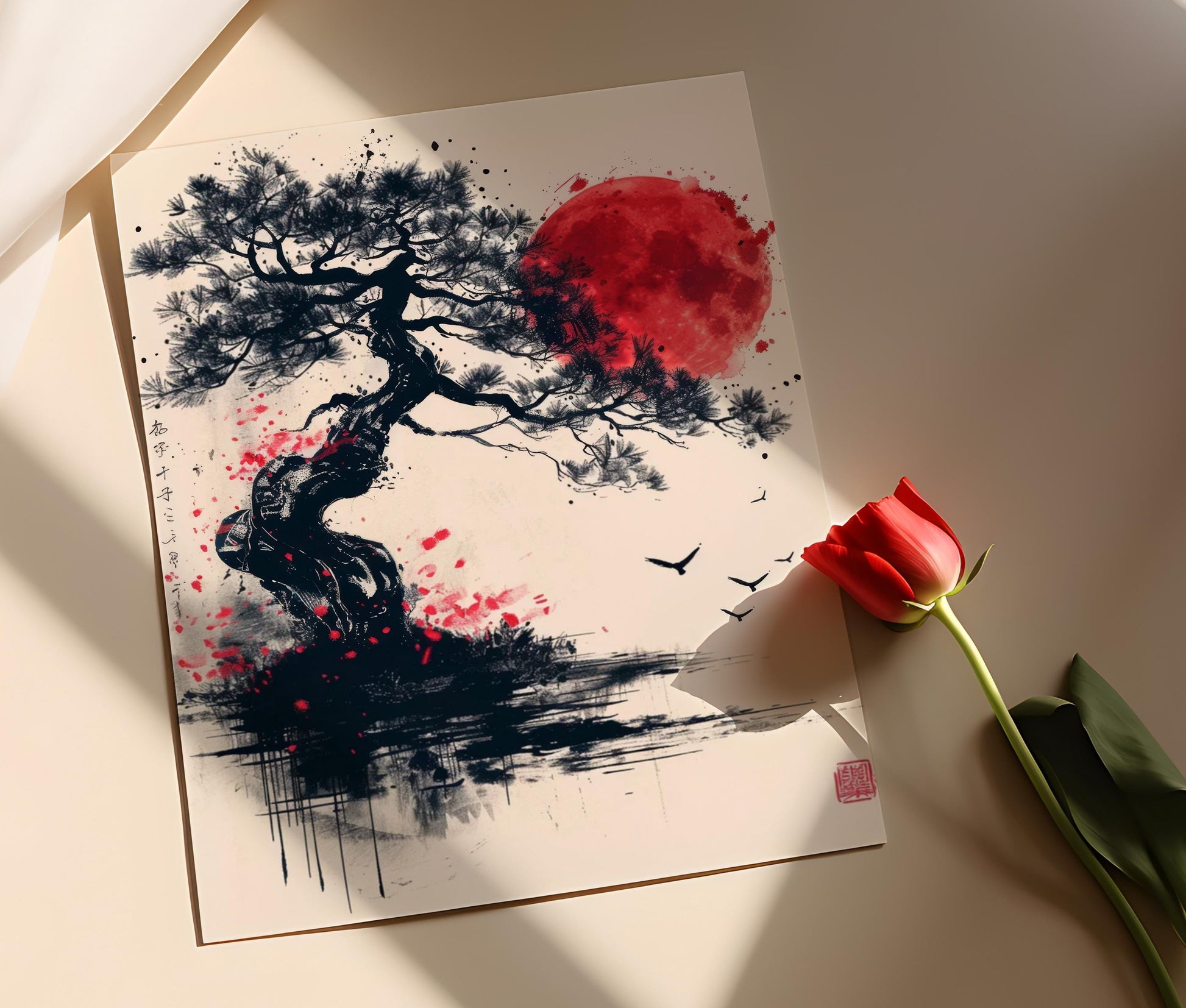 Affiche Bonzaï et Lune – Impression Art en Encre Chinoise