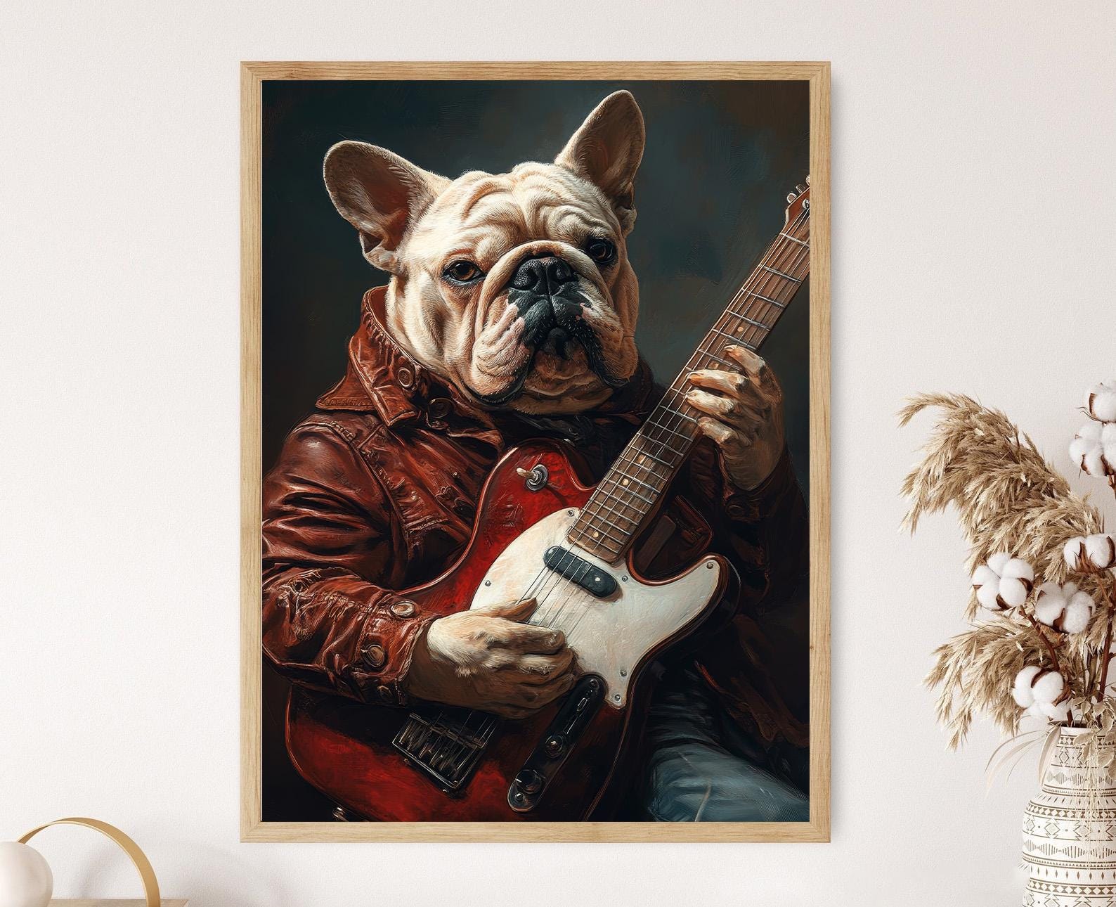 Affiche Bulldog Jouant de la Guitare – Poster Animaux Drôles