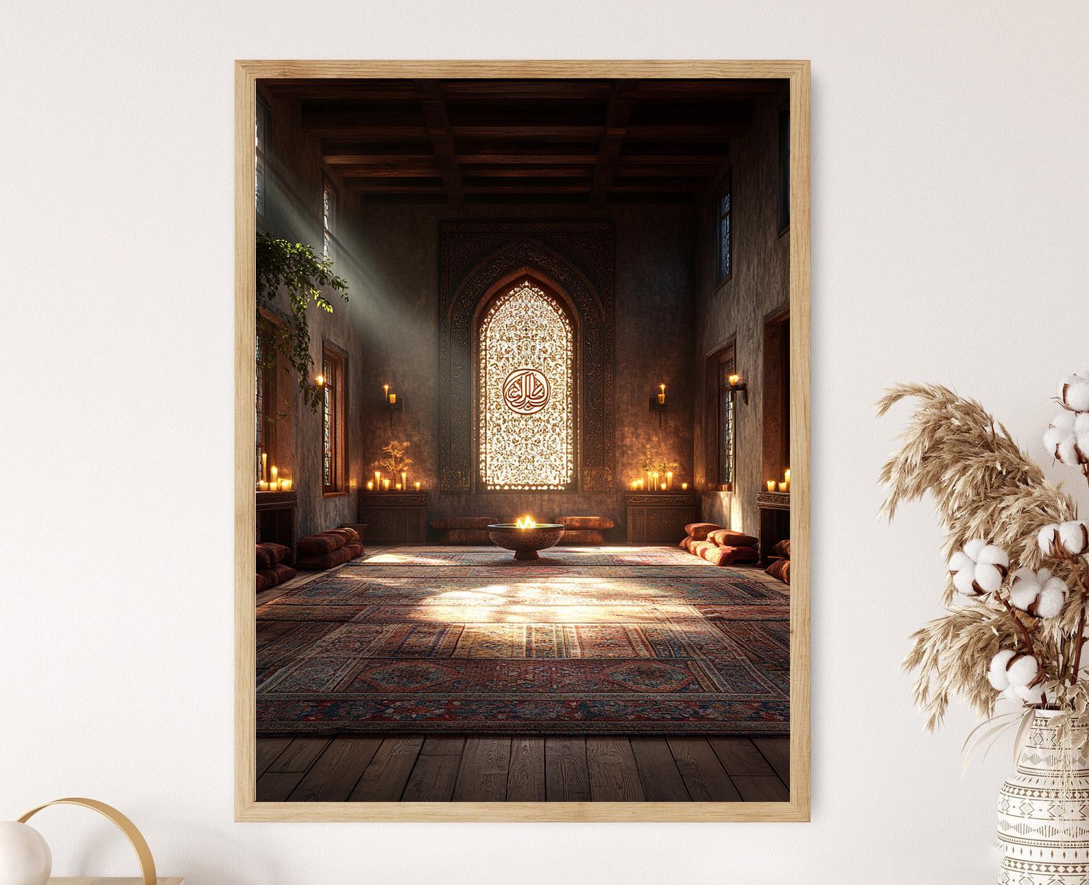 Découvrez cette magnifique affiche qui capture l'essence d'un hall de rituel Alevi, où des danseurs s'unissent en un cercle de semah, entourés de bols d'eau sacrée et de bougies scintillantes. Cette illustration vibrante, empreinte de spiritualité et de sérénité, apporte une touche unique à votre décoration murale. Transformez votre espace avec ce poster mural évocateur qui célèbre la richesse de la tradition Alevi et l'art mural contemporain.