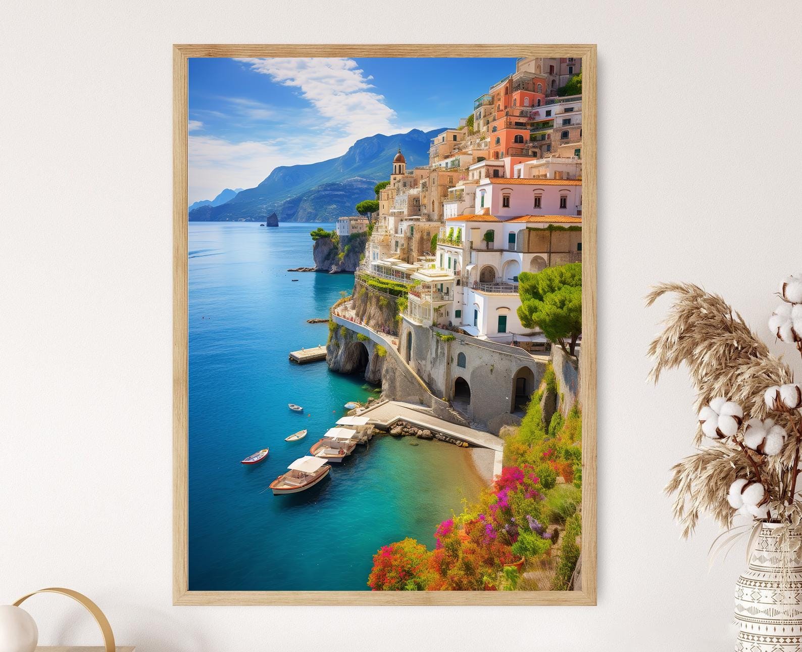Affiche Côte Amalfitaine – Poster Vue village méditerranéen décor mural