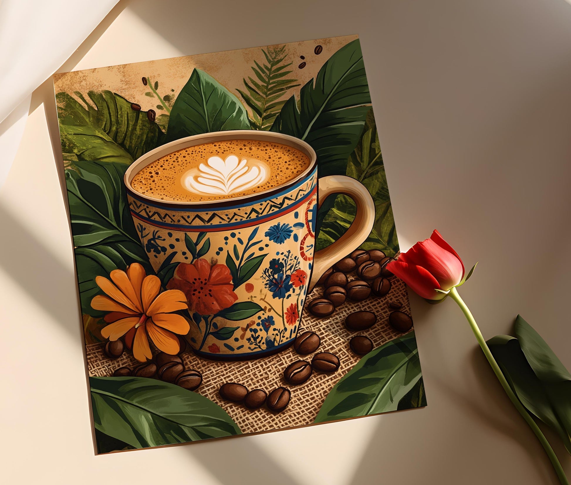 Affiche Café Brésilien – Imprimé Art Amazonien, Décor Rustique Chaleureux