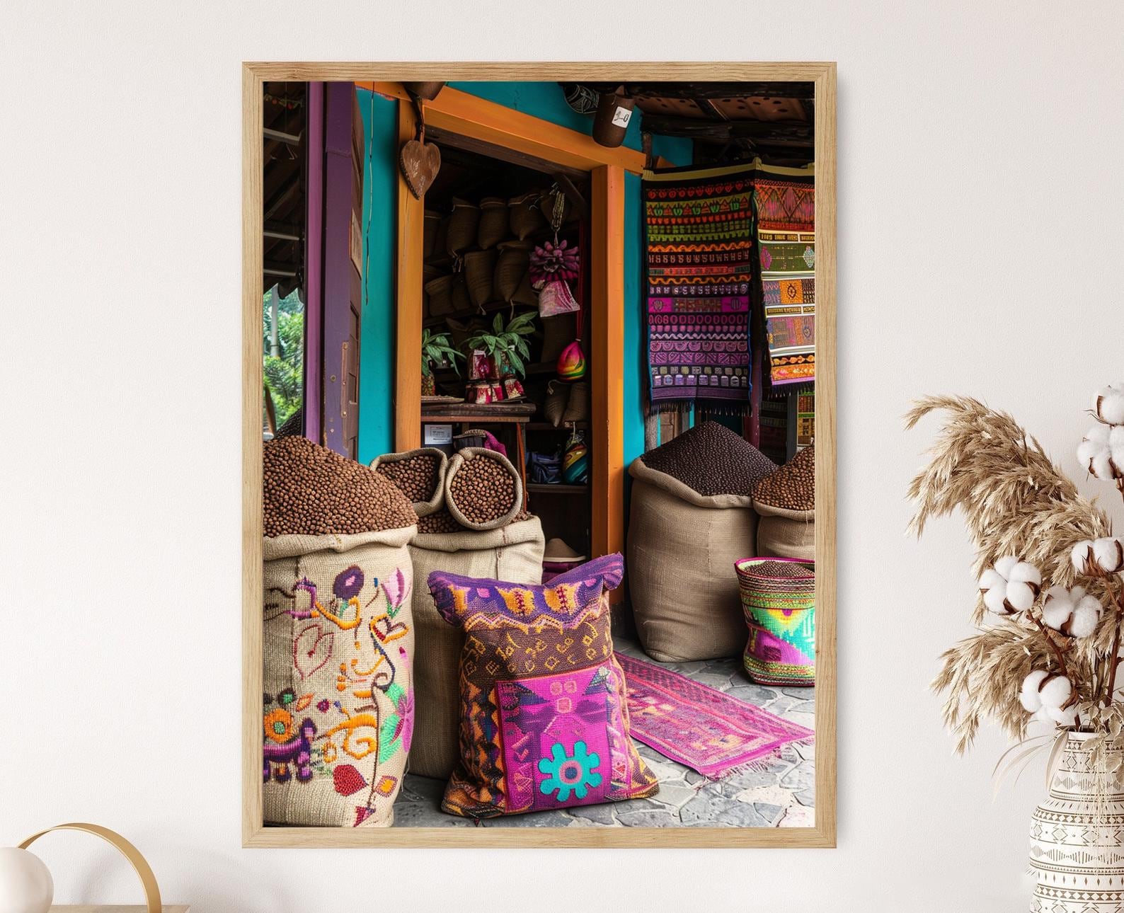 Plongez dans une ambiance chaleureuse et colorée avec cette affiche inspirée des cafés colombiens animés. Cette illustration vibrante évoque des moments de convivialité et de partage, capturant l’énergie et les arômes d'un lieu où l'art mural rencontre la culture du café. Parfaite pour ajouter une touche d'authenticité à votre décoration murale, ce poster mural transformera n'importe quel espace en une célébration de la vie quotidienne.
