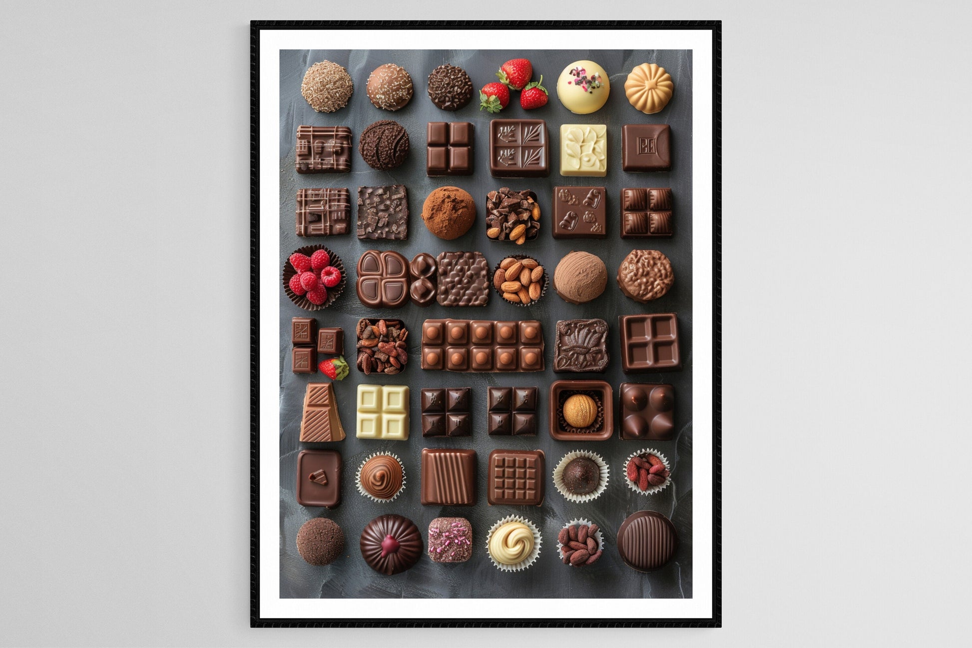 Découvrez cette affiche captivante qui célèbre la beauté riche et décadente du chocolat. Avec une illustration détaillée et élégante, ce poster mural évoque une ambiance gourmande et chaleureuse, parfaite pour rehausser votre décoration murale dans la cuisine ou la salle à manger. L'art mural met en valeur l'irrésistible attrait du chocolat, apportant une touche d'émotion et de sophistication à votre espace.