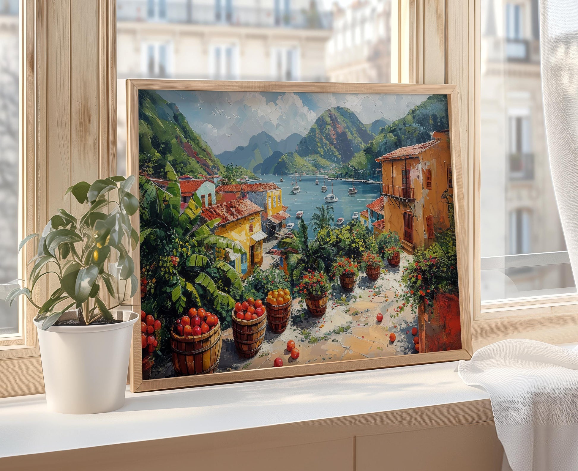 Affiche Castries Sainte-Lucie – Poster Scène Colorée du Port Caribéen