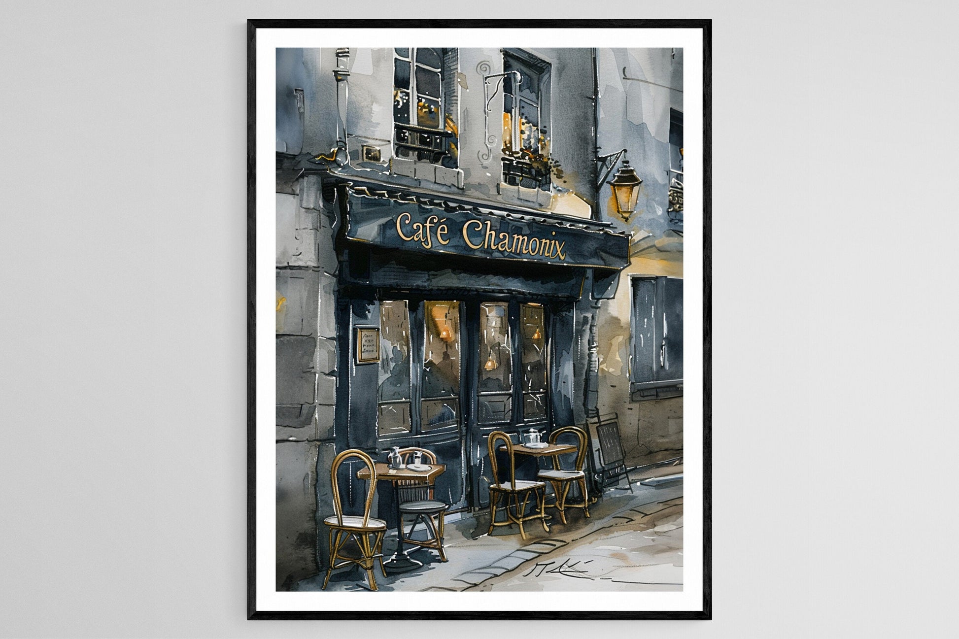 Évadez-vous dans les rues pittoresques des Alpes françaises avec notre affiche "Chamonix Cafe". Cette illustration captivante dépeint l'élégance rustique d'un café cosy, entouré de vues sereines sur les montagnes, évoquant une atmosphère chaleureuse et accueillante. Parfaite pour la décoration murale, cet art mural ajoutera une touche de charme européen à votre espace de vie.