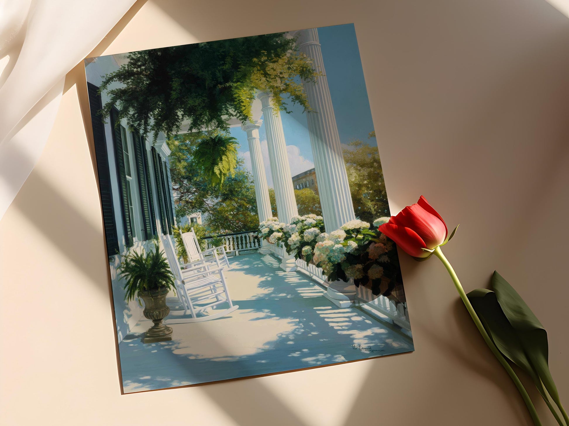 Découvrez cette affiche délicate qui évoque l'élégance du Sud avec une scène de porche charlestonien. Cette illustration vibrante, ornée d'hydrangeas et de fougères suspendues, invite à la sérénité et à la beauté intemporelle de la vie côtière. Parfaite en tant que décoration murale, cet art mural apportera une touche de charme et de tranquillité à votre intérieur.