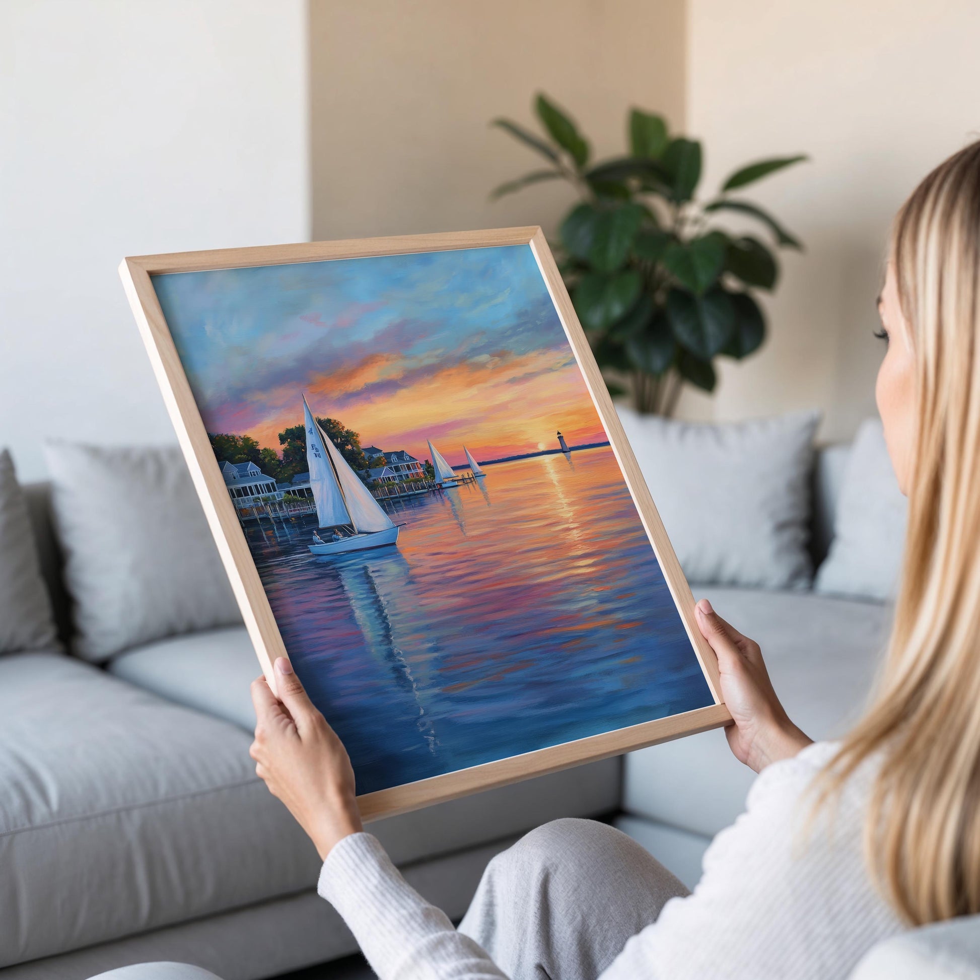 Affiche Chesapeake Bay – Poster Voilier au Couché de Soleil Nautique