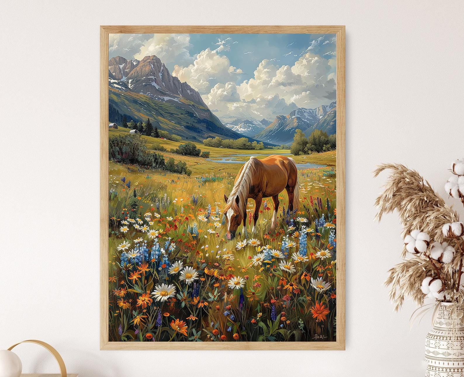 Affiche Cheval Islandais – Poster Art Nordique, Prairie et Fleurs Sauvages