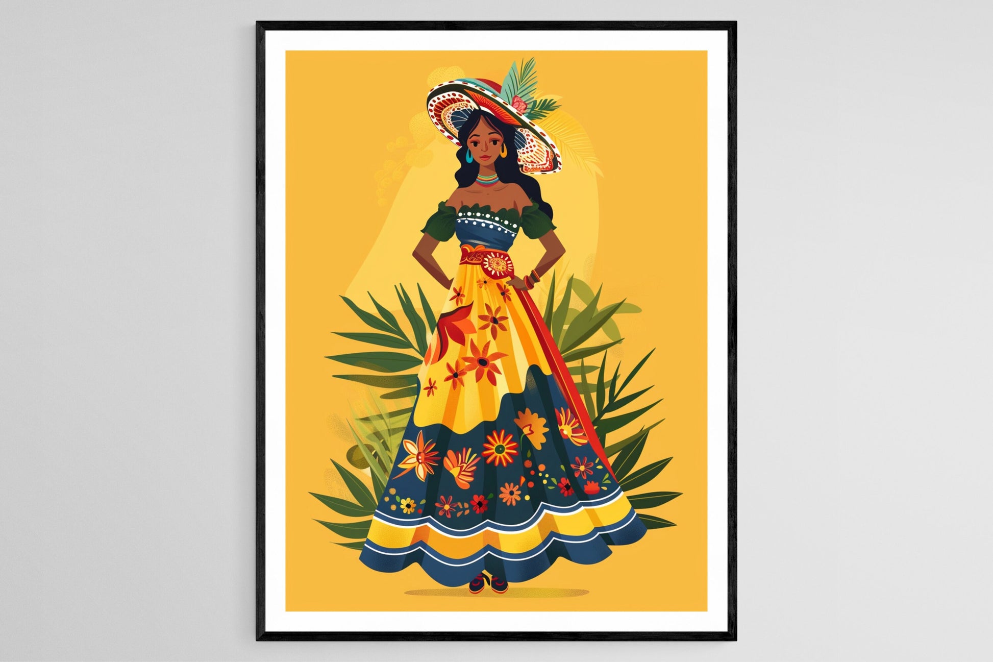 Plongez dans l'ambiance colorée du Brésil avec notre affiche illustrée "Brazilian Chic". Cette décoration murale met en avant la somptueuse robe Baiana, offrant une célébration vibrante de l'héritage culturel. L'illustration, riche en détails et en émotions, apportera une touche authentique et dynamique à votre art mural, transformant votre intérieur en un véritable festival de couleurs et de traditions.