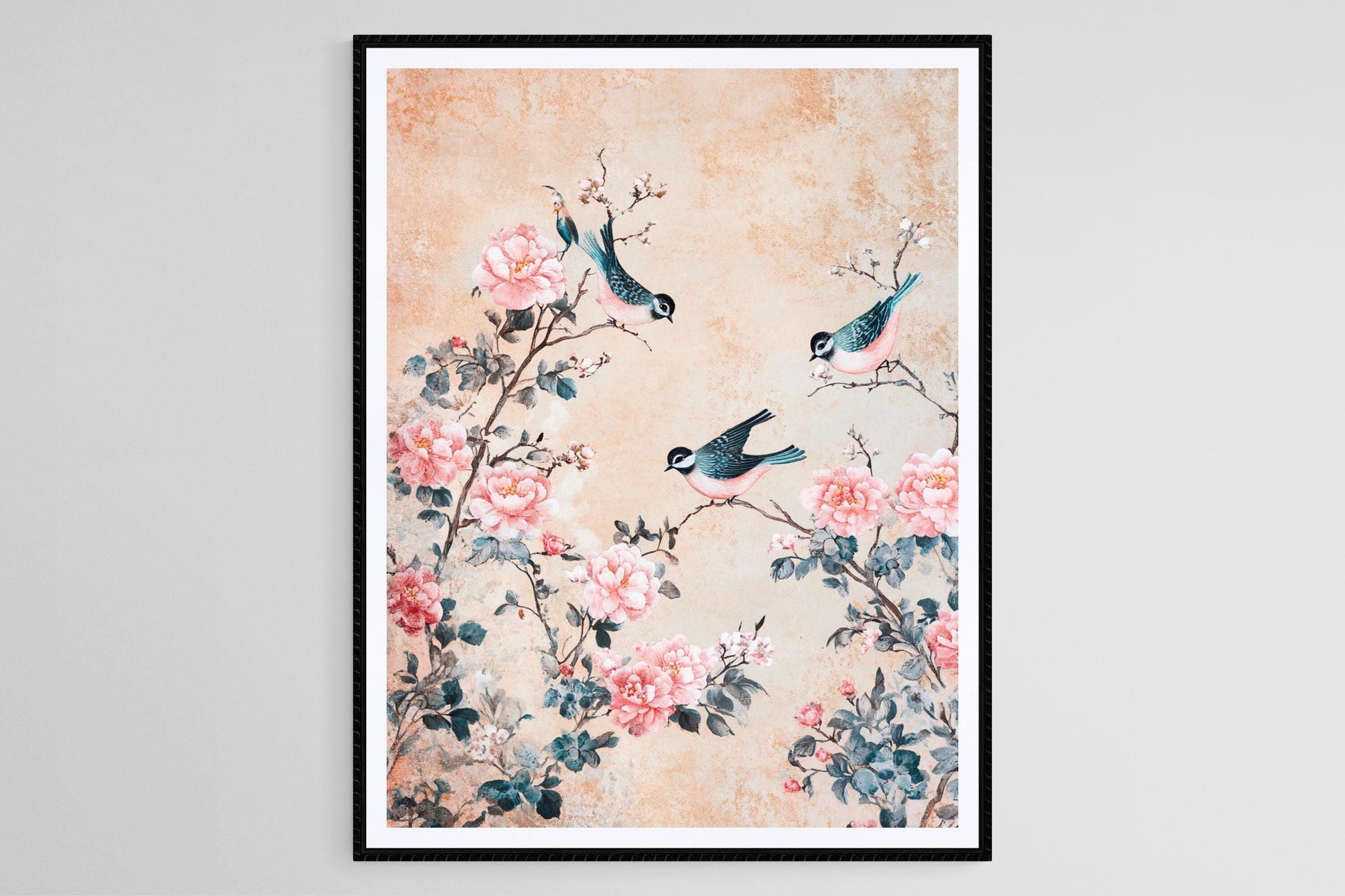 Affiche Chinoiserie – Poster Élégant avec Oiseaux et Fleurs