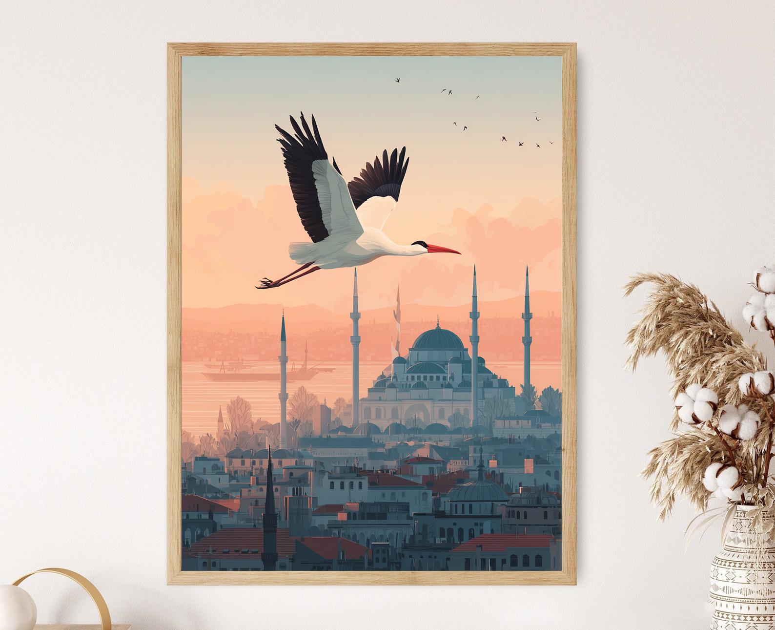 Affiche Cigogne d'Istanbul – Poster Art Vecteur Soirée Mosquée