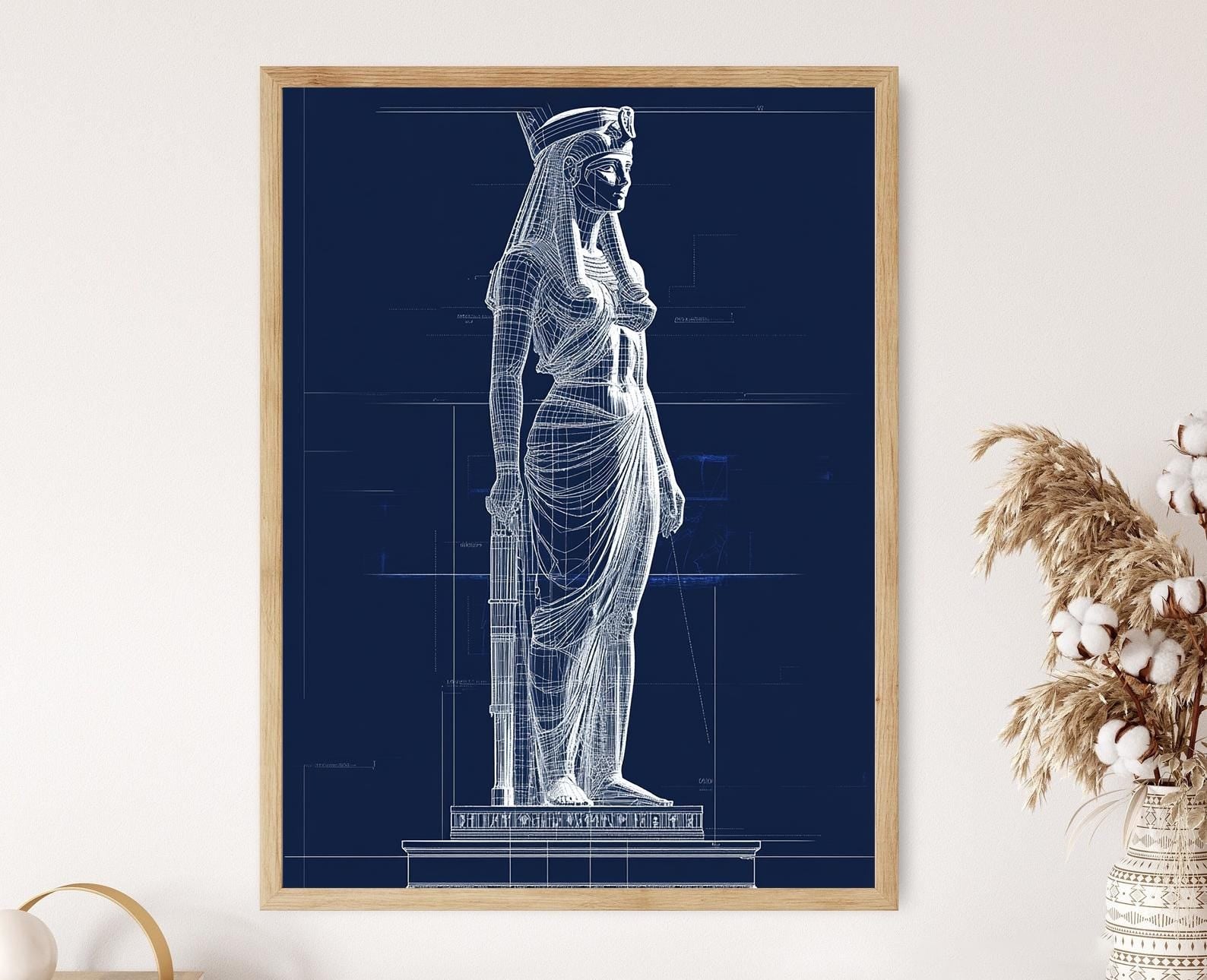 Affiche Cléopâtre – Illustration Blueprint Égyptienne, Art Poster