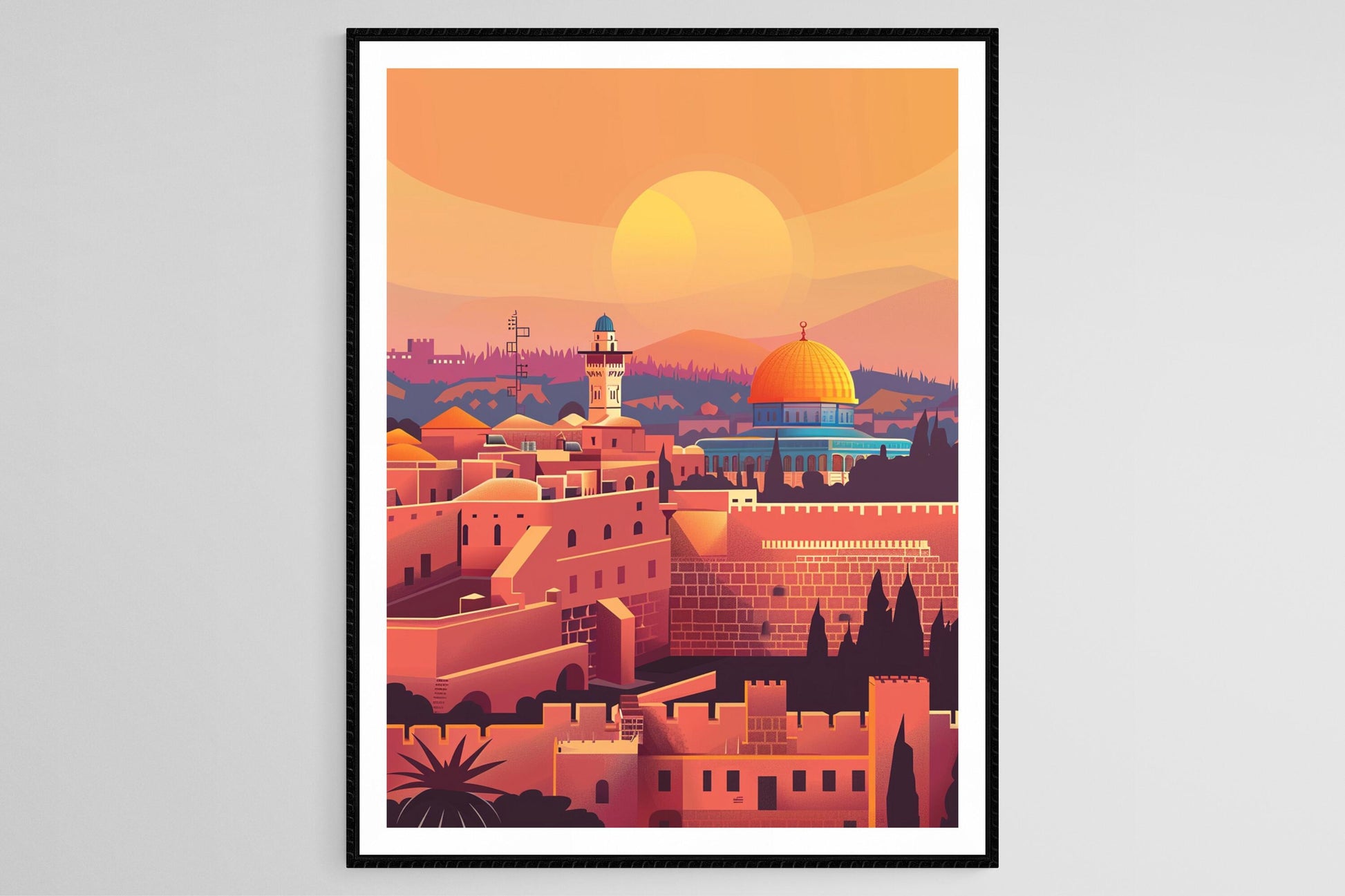 Affiche Coucher de Soleil à Jérusalem – Poster Skyline Iconique Judaïque