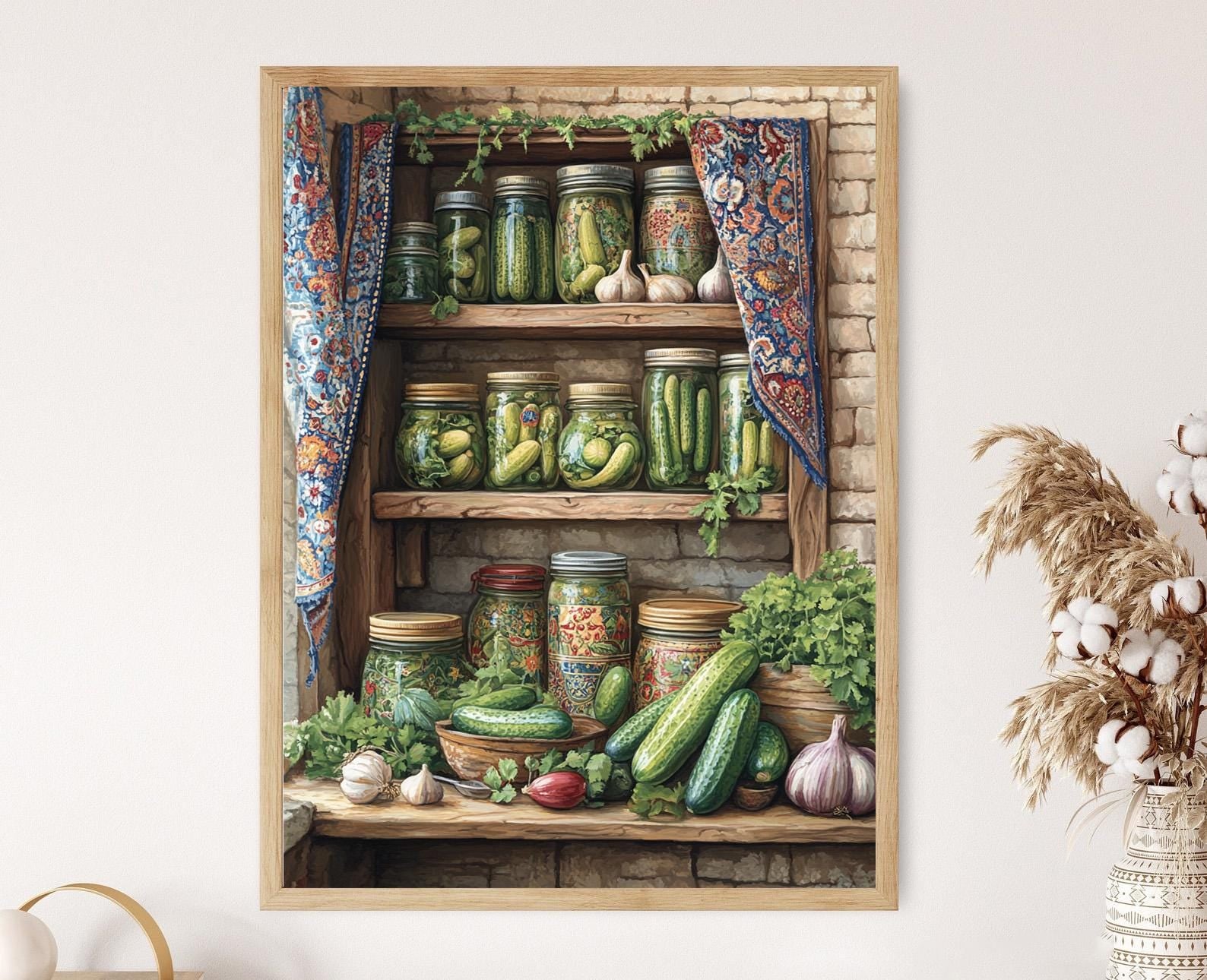 Découvrez cette affiche captivante qui met en avant une étagère de conservation persane, ornée de bocaux de concombres, d'ail et d'herbes, le tout encadré par un textile brodé aux motifs boteh paisley. Cette illustration évoque chaleur et authenticité, apportant une touche de caractère à votre décoration murale. Idéale pour enrichir votre espace de vie, ce poster mural transforme n'importe quel coin de votre maison en un véritable hommage à la culture et au savoir-faire artisanal.