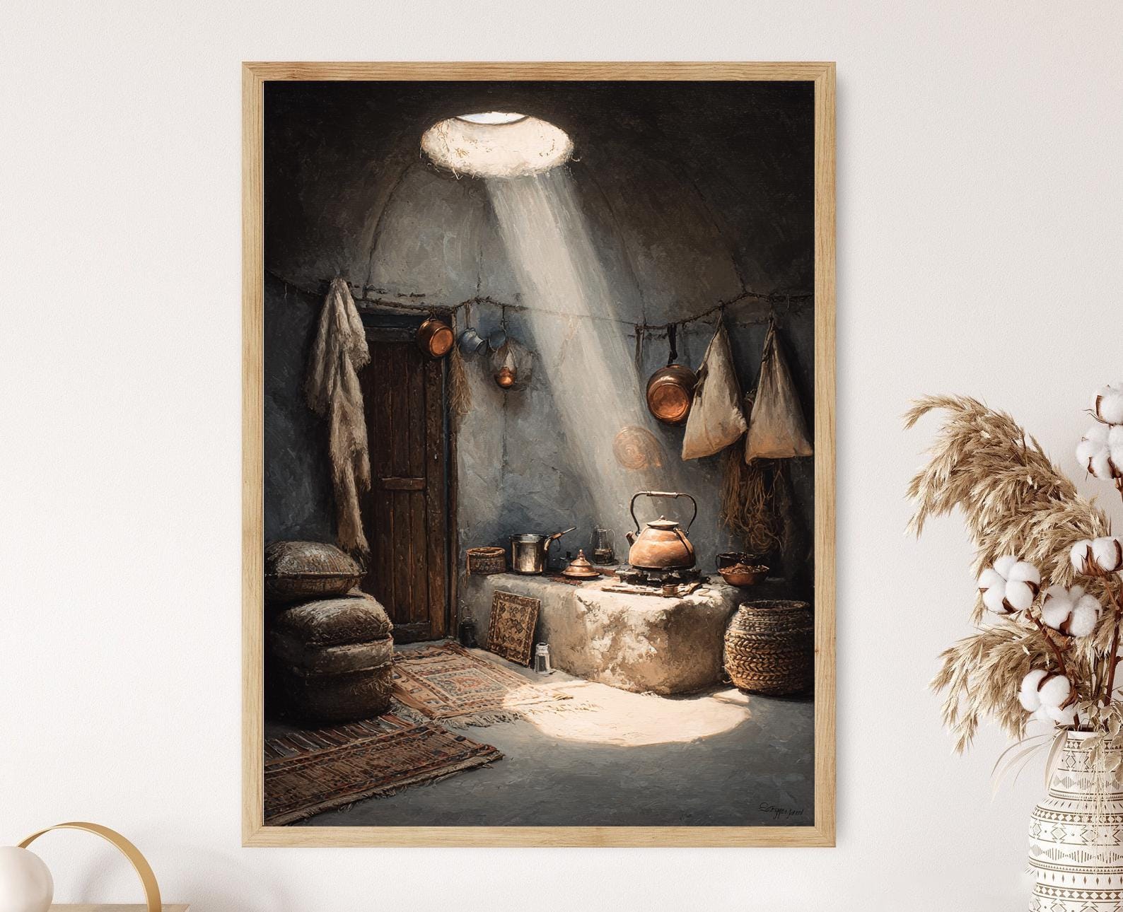 Affiche Cuisine Yurt Kazakh – Poster Coin Cuisinier Nomade Art Asiatique