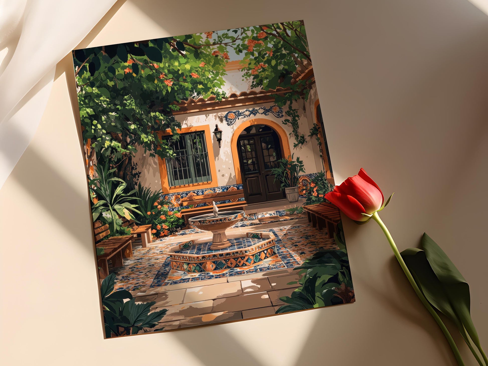 Affiche Décor Patio Chilien – Poster Azulejos et Fontaine Culturelle