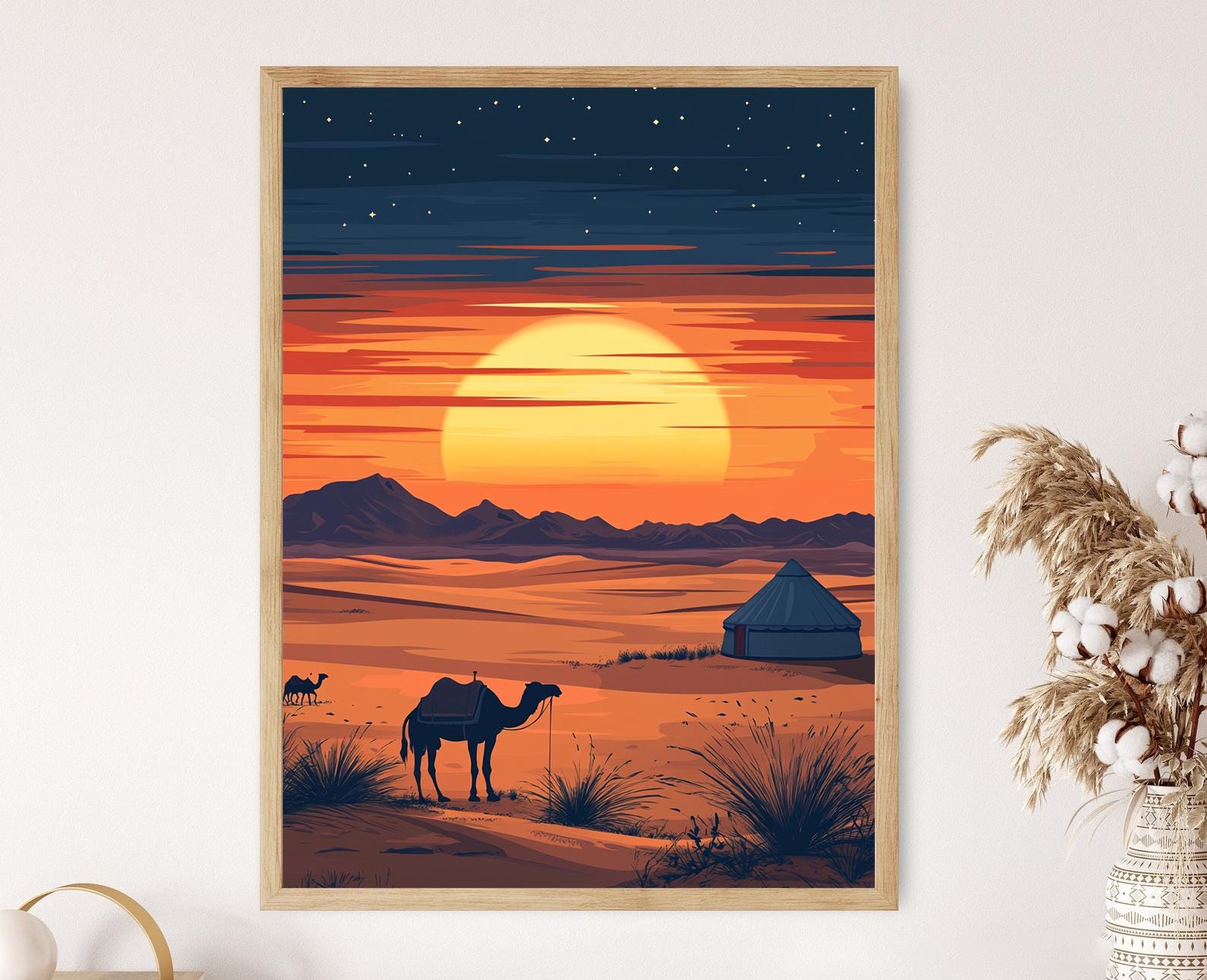 Affiche Désert de Gobi – Poster Yurt Isolé sous un Ciel Étoilé