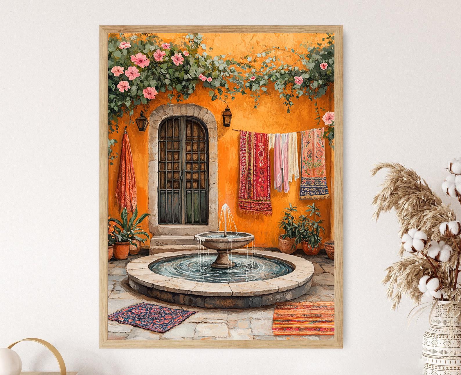 Découvrez notre affiche vibrante qui capture l'essence d'une cour de Dakar, où une fontaine en pierre est ornée de fleurs d'hibiscus, et des murs en stuc colorés évoquent la chaleur de l'Afrique de l'Ouest. Cette illustration pleine de vie apportera une touche de charme et de caractère à votre décoration murale, créant une atmosphère accueillante et inspirante dans n'importe quelle pièce. Transformez votre espace avec ce poster mural qui célèbre la beauté de la culture et de la vie quotidienne.
