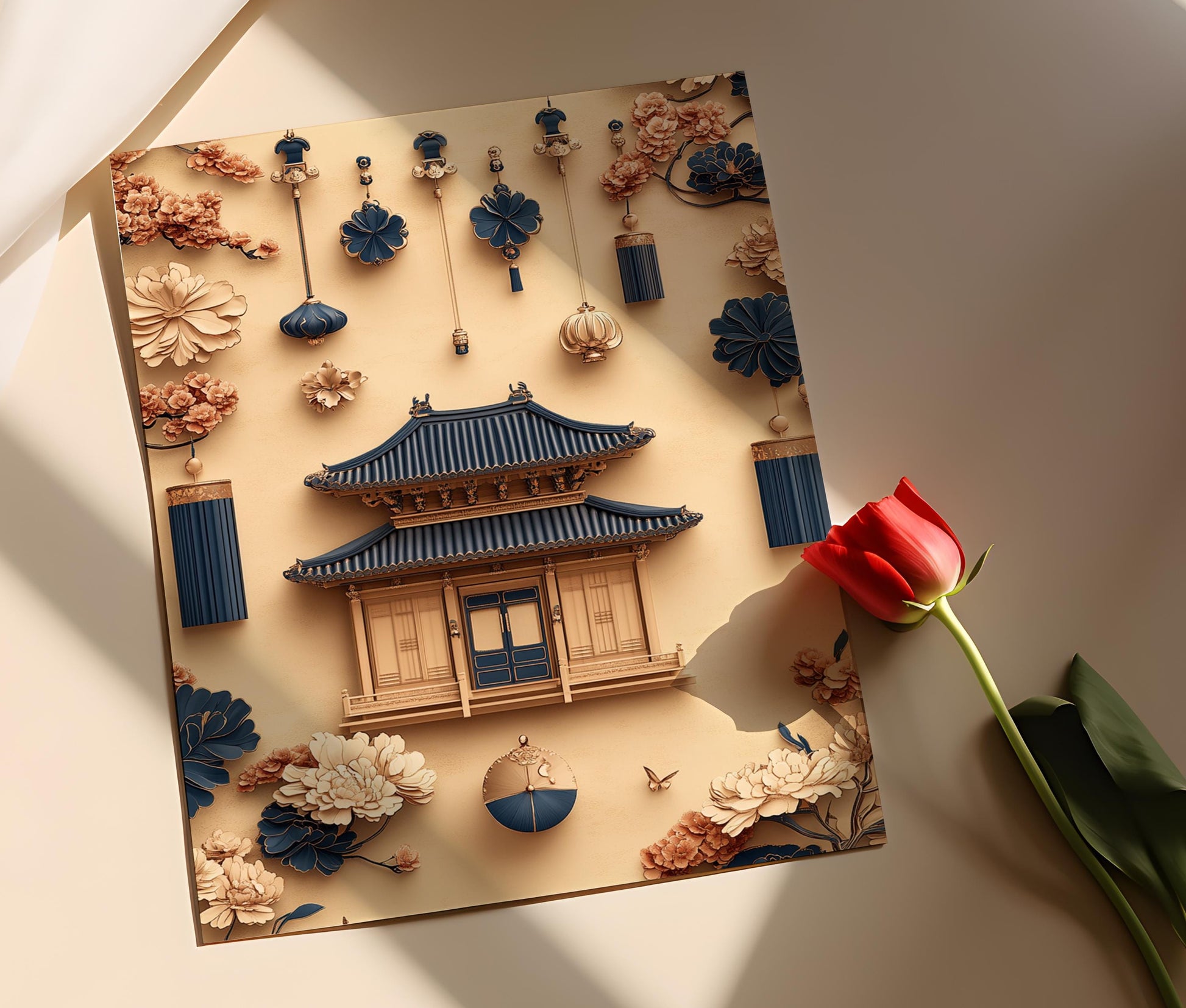 Plongez dans l'élégance culturelle avec cette affiche captivante qui met en valeur les motifs dancheong coréens. Cette illustration vibrante, riche en couleurs, illumine vos murs avec une décoration murale unique, alliant tradition et modernité. Ajoutez une touche d'art mural à votre intérieur et laissez-vous emporter par la beauté symbolique de ces motifs décoratifs.